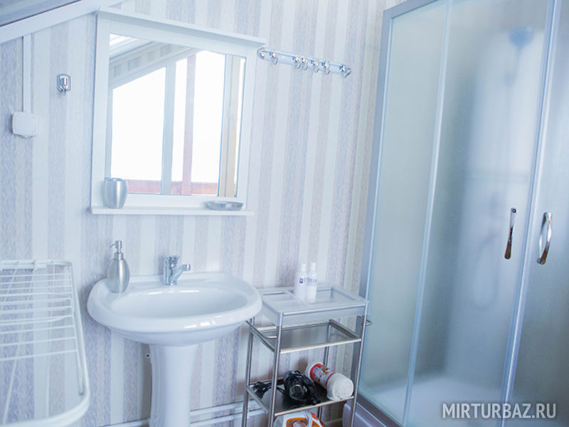 Санузел оснащён душевой кабинкой, плюс здесь вы найдете все необходимое: шампунь, гель для душа, мыло, маски для лица, фен, полотенца, халаты.