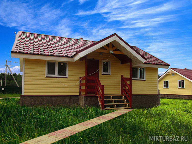 Малый коттедж — 10 домов. Площадь дома 45 м2. Дом расположен на участке 8 соток. Рассчитан на количество от двух до четырёх человек. Так же в стоимость входит одно дополнительное спальное место. Это одноэтажный коттедж с крыльцом, состоящий из двух спален и кухни-гостиной. В коттедже один санузел.