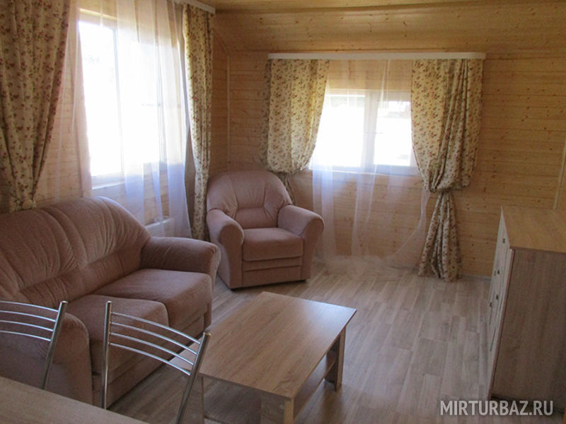 Дополнительно в каждом коттедже предусмотрено: сушка для одежды и белья, гладильная доска, утюг, кроватки для очень маленьких детей (при необходимости), 5 литров питьевой воды и 2,5 кг угля.