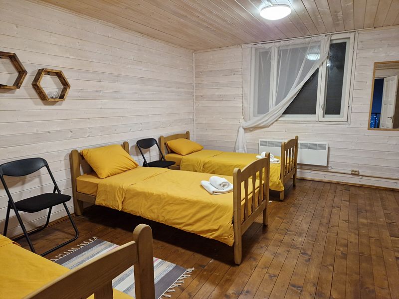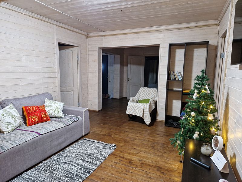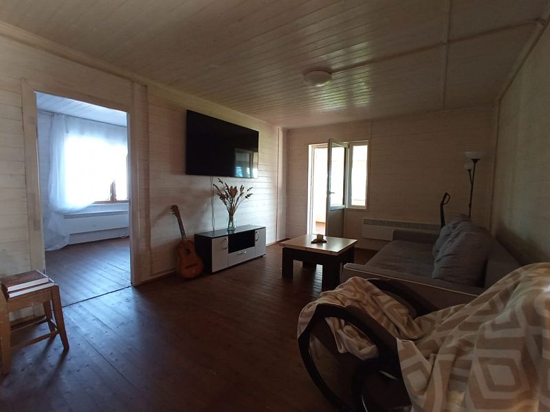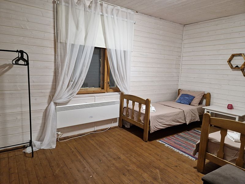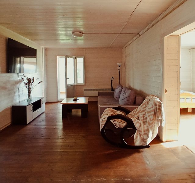 Коттедж рассчитан на компанию до 14 человек (12 основных мест + 2 доп.места на диване, без доп.платы). Отапливается электричеством, центральное водоснабжение, горячая вода от бойлера на 200 литров. В доме есть wi-fi.