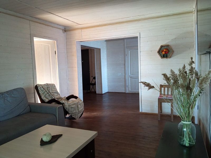 В уютной гостиной располагается 2-х спальный раскладной диван, большой телевизор с подключенным интернетом.