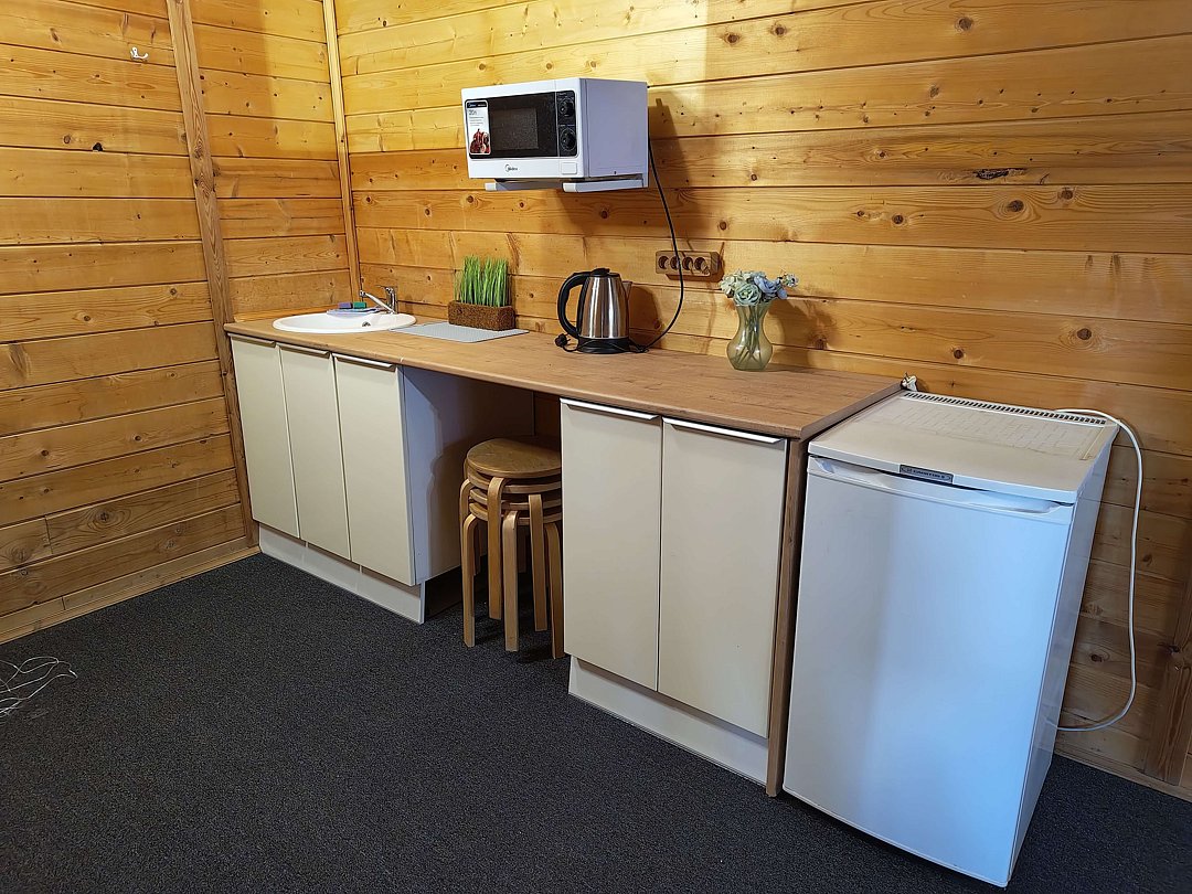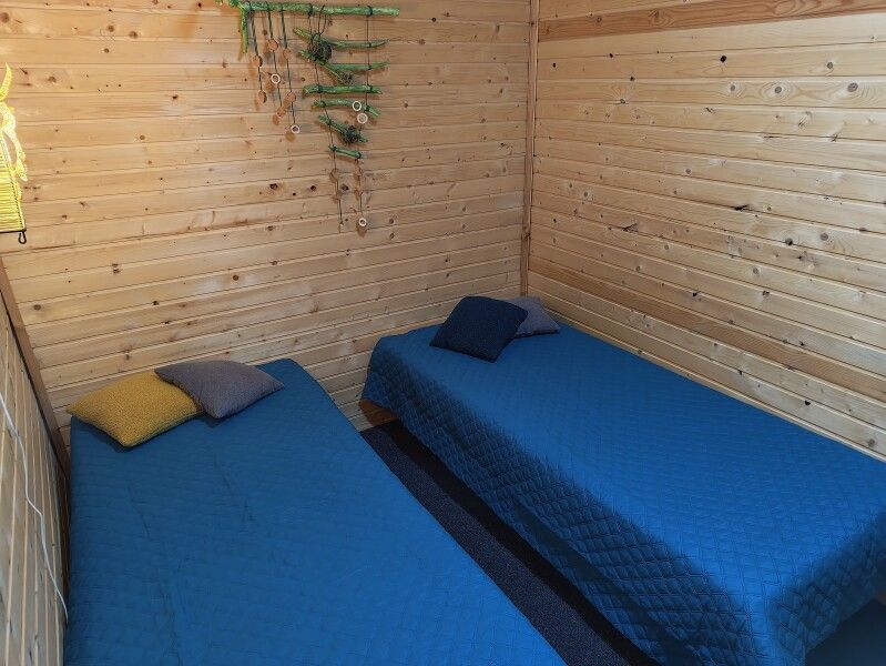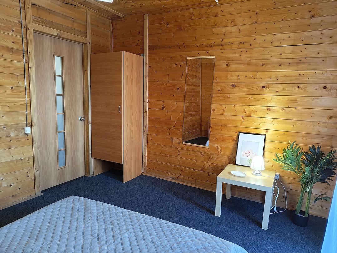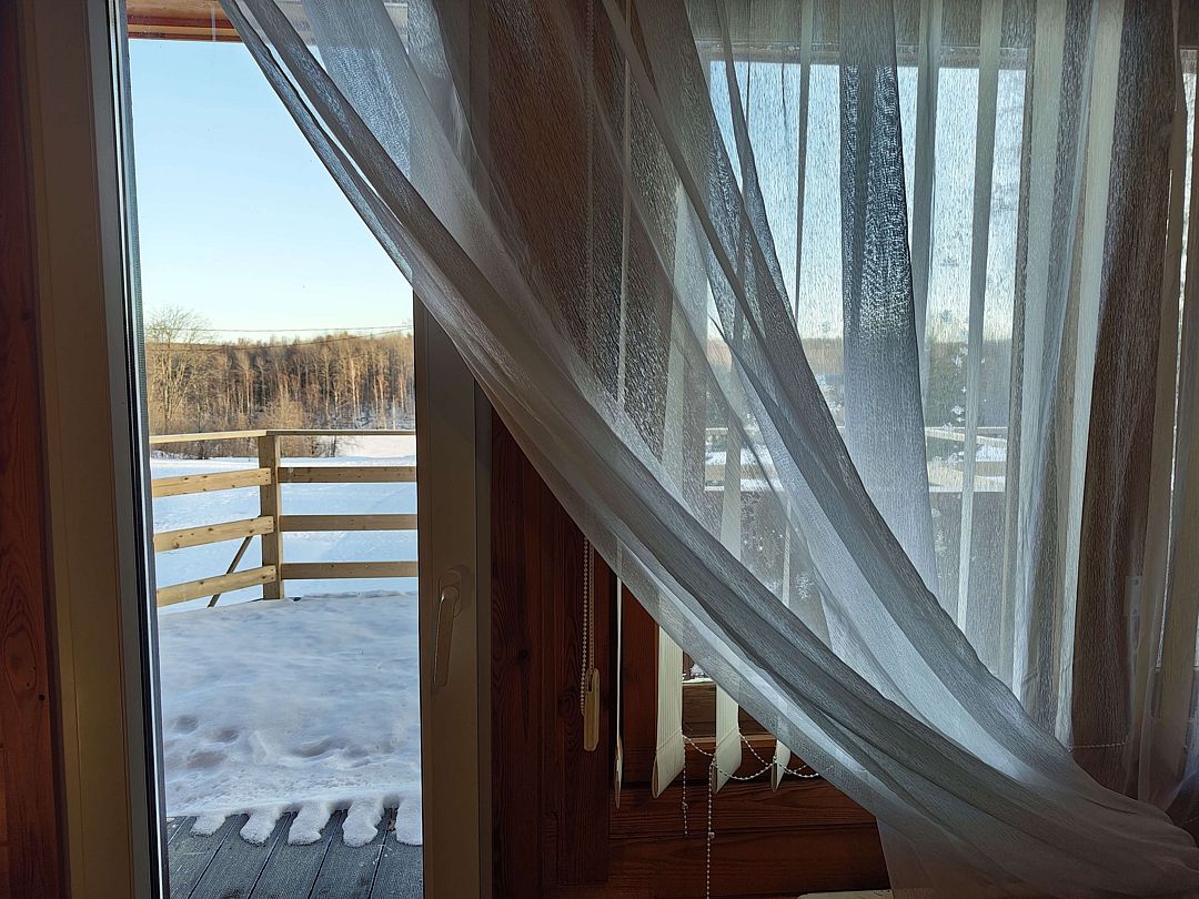 Номер на втором этаже с выходом на балкон. Вид на лес и озеро, состоит из одной комнаты и кухни-студии. Первая комната — двуспальная кровать. Диван двуспальный в кухне-гостиной — дополнительные места.
