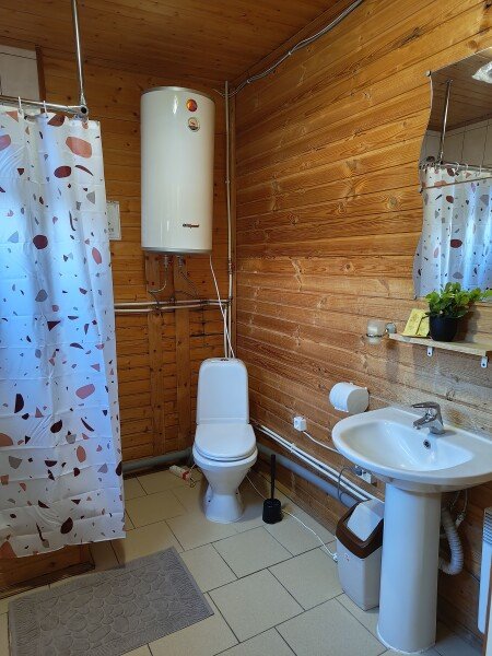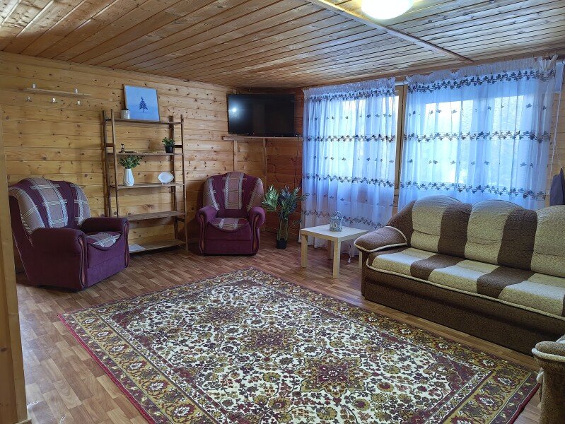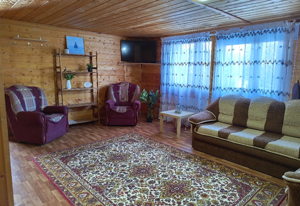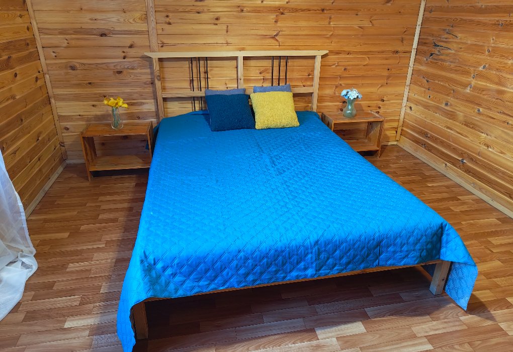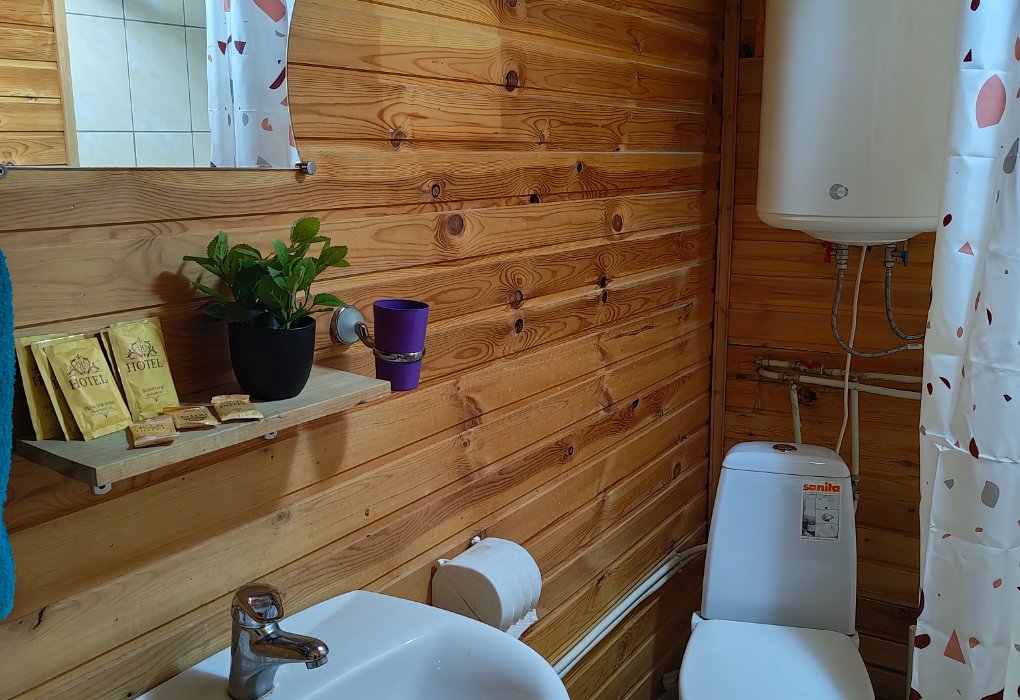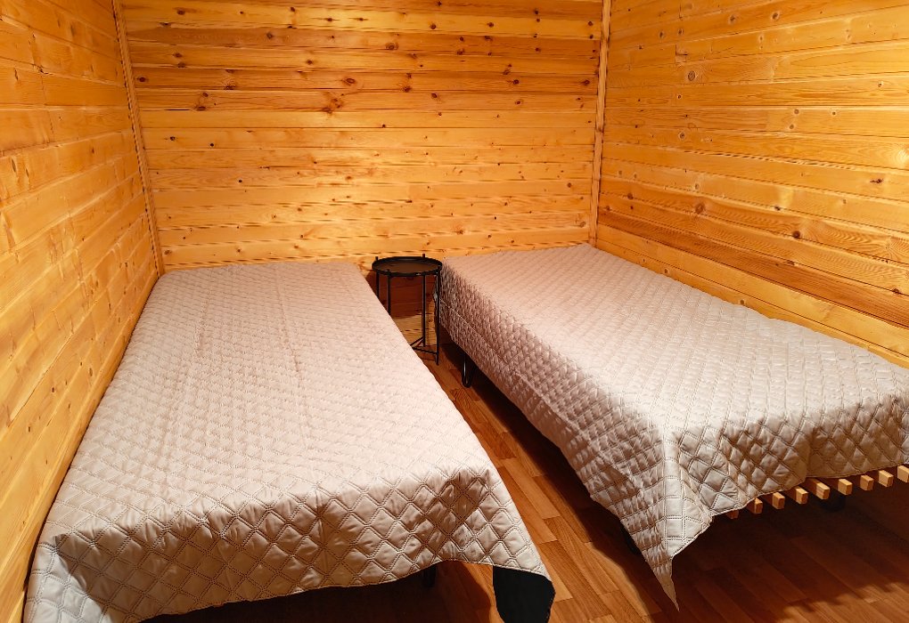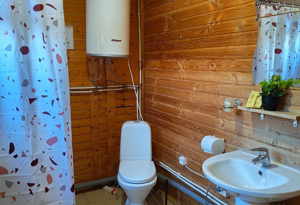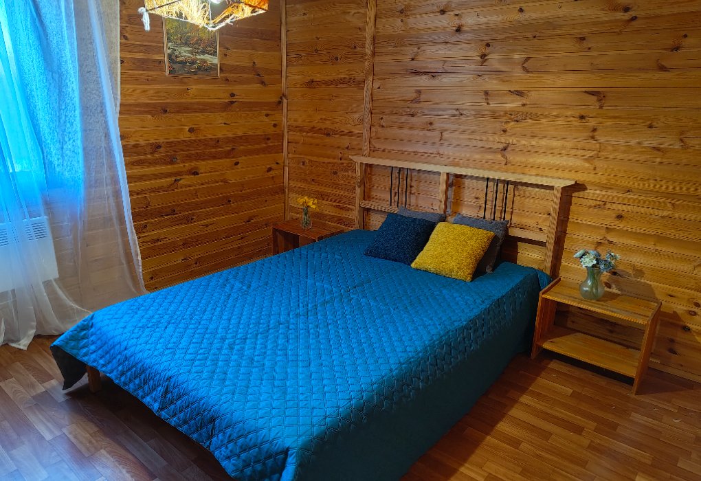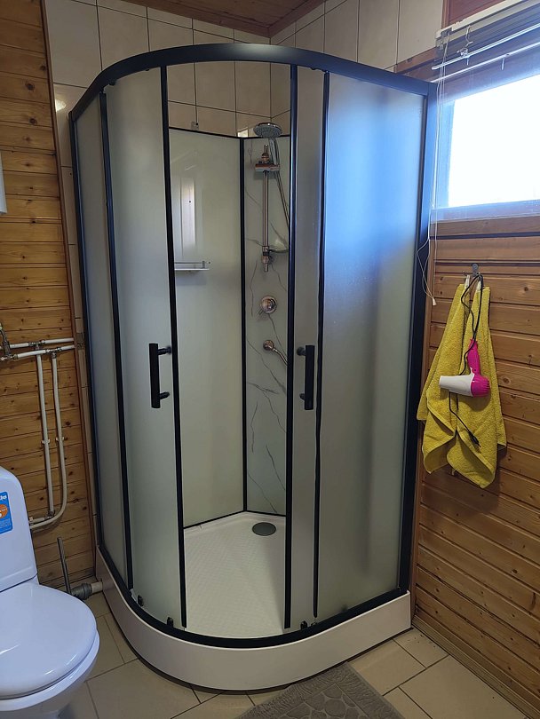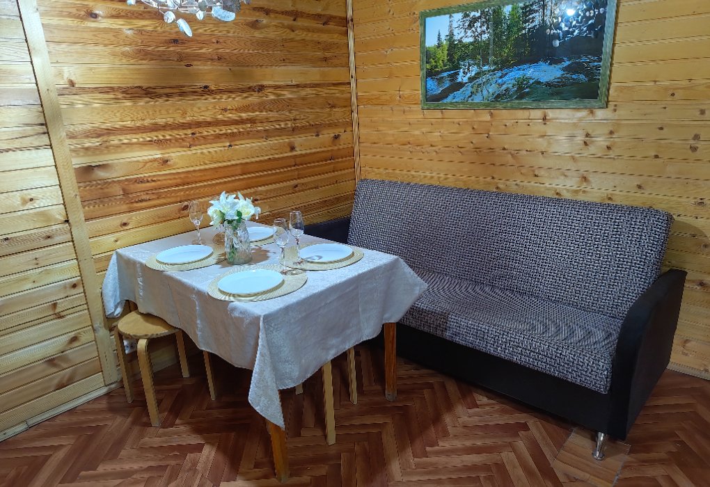 в коттедже есть всё для комфортного отдыха: двуспальная кровать, три односпальных кровати, кухня со всем необходимым, совмещенный санузел, душевая кабина, средства гигиеныУслуги и удобства