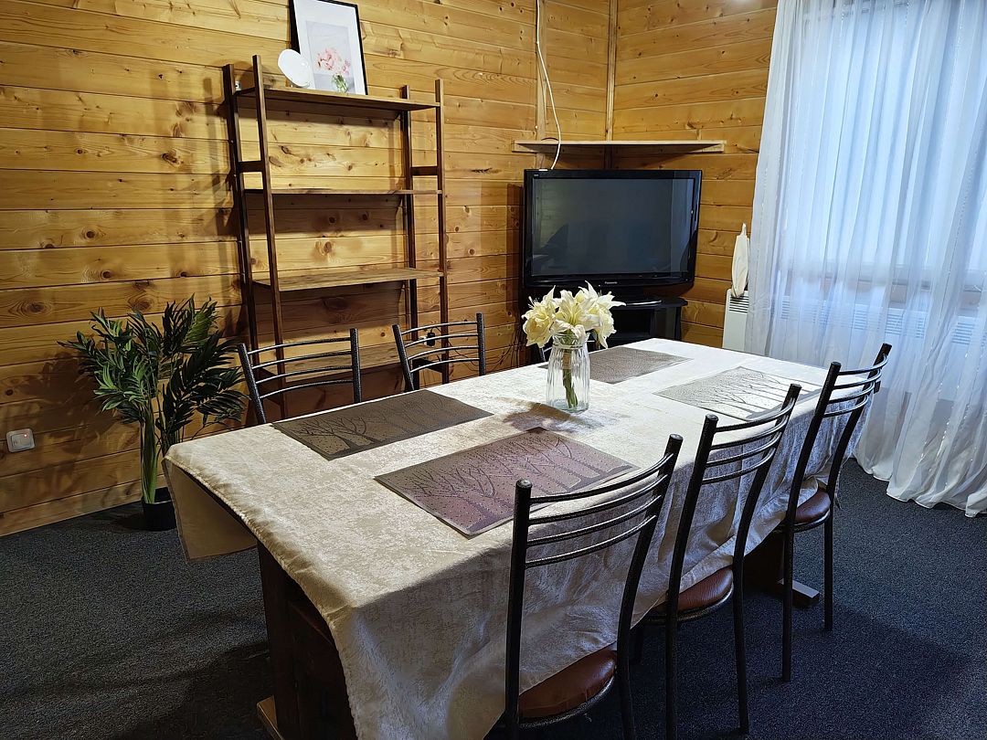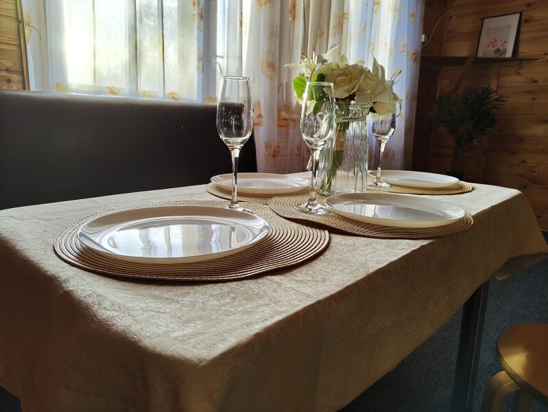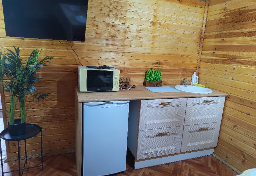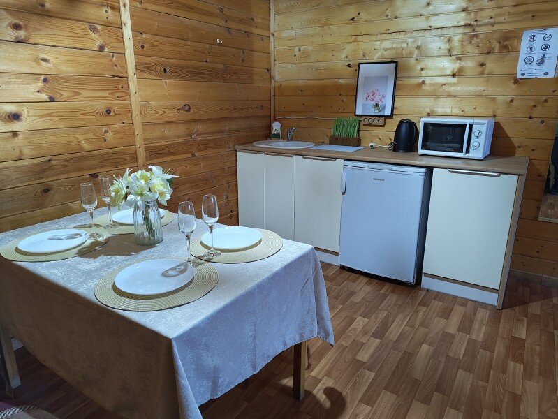 Наш домик оборудован всем необходимым для комфортного пребывания: от кухонной утвари до уютным текстилей. Мы позаботились о том, чтобы Вы чувствовали себя как дома.
