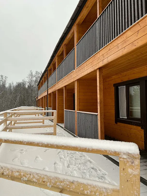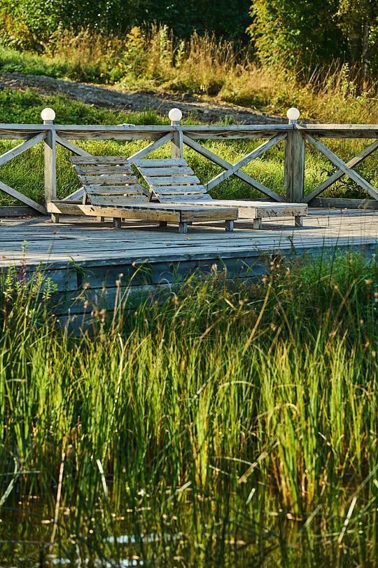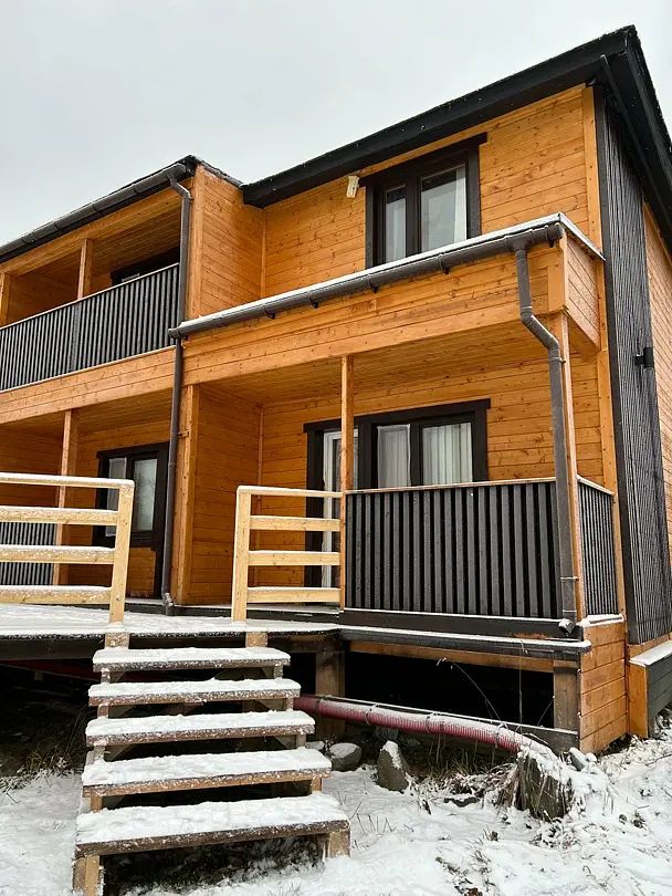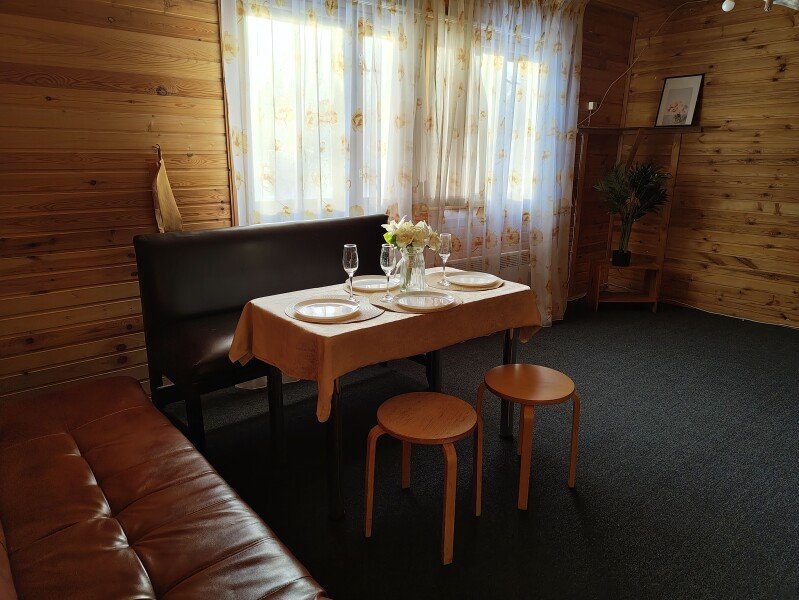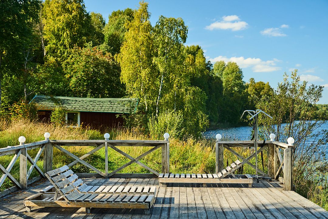Из Домика Вы сможете выйти на собственную террасу с потрясающим видом на озеро. Это идеальное место для утреннего кофе или вечерних посиделок на свежем воздухе, где Вы сможете насладиться природой и красотой окружающего пейзажа.