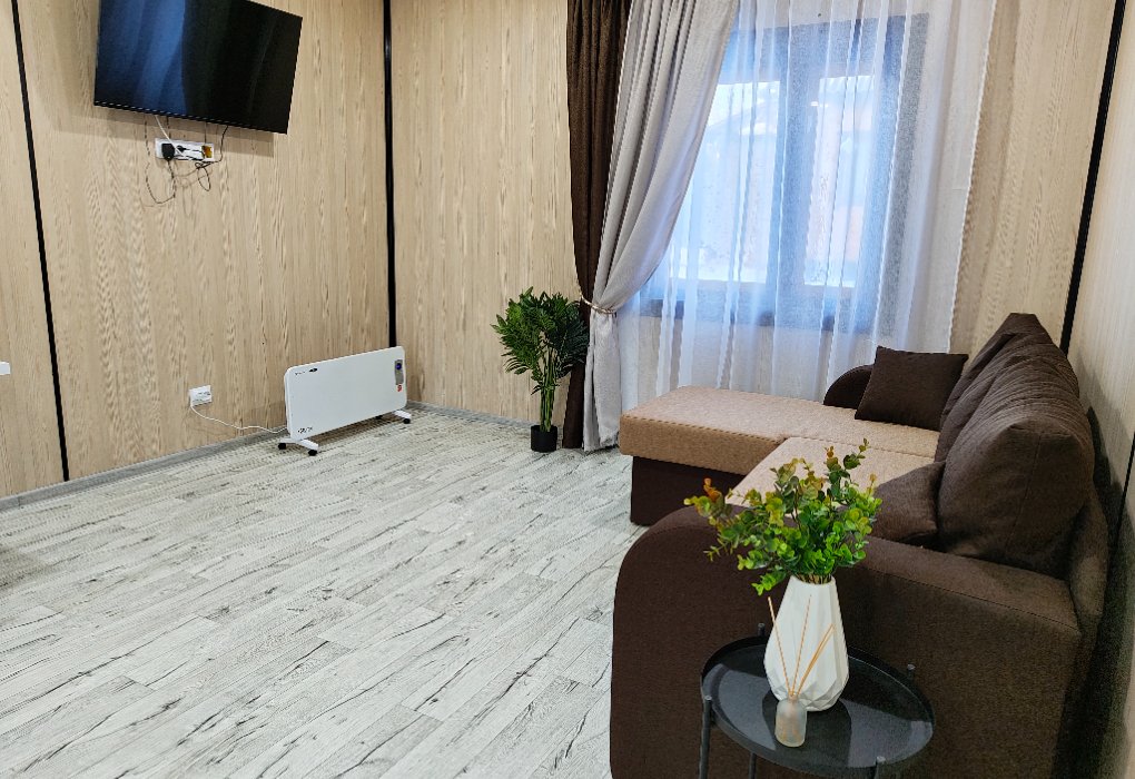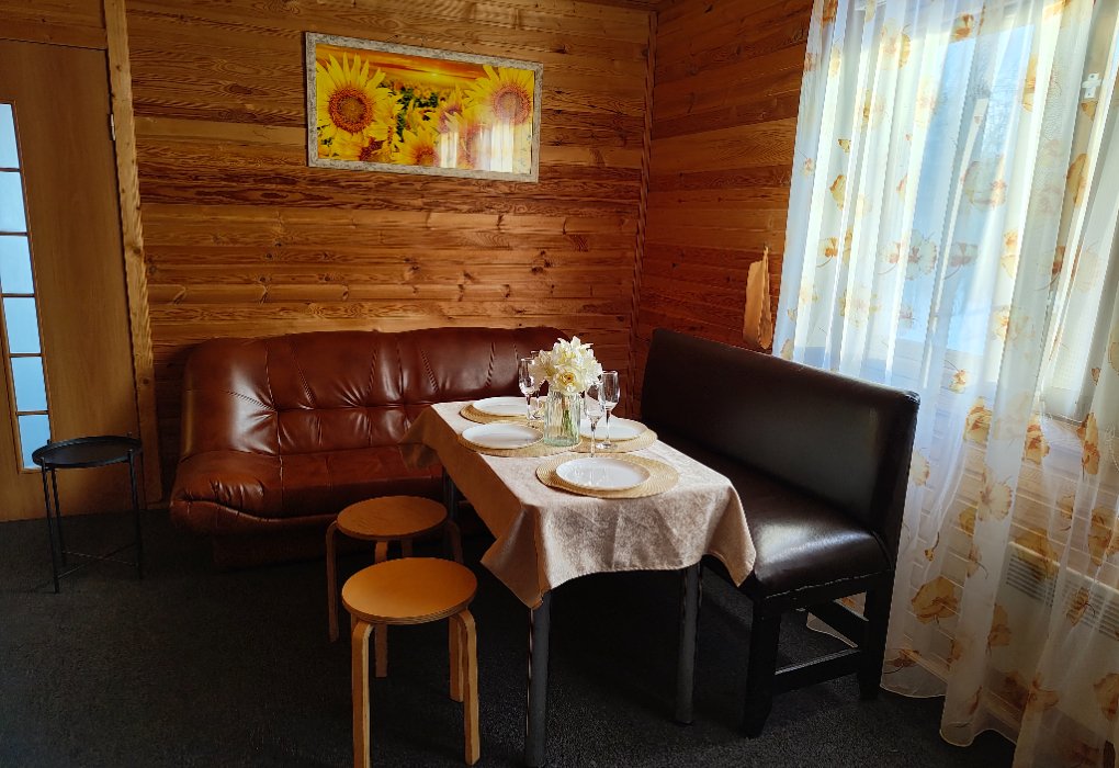 Диван двуспальный в кухне-гостиной — дополнительные места. В вашем распоряжении все удобства для комфортного проживания. Предоставляются гигиенические принадлежности (шампунь, гель для душа, мыло), полотенца.