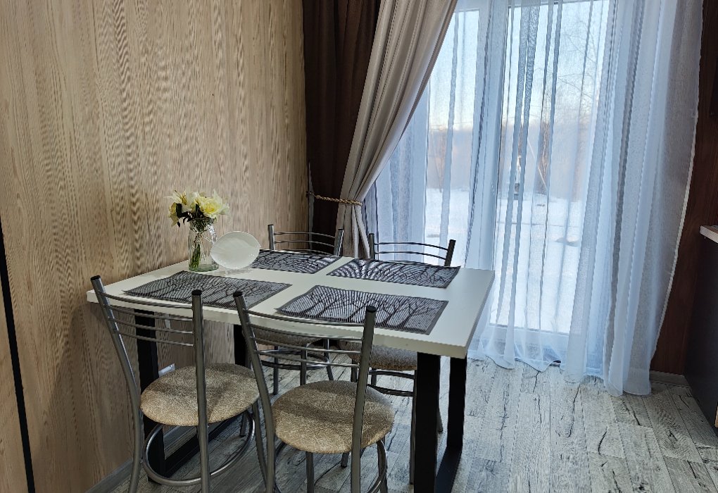 номер находится на втором этаже. Номер состоит из одной комнаты и кухни-студии. Одна двуспальная кровать. Диван двуспальный (дополнительные места). В Вашем распоряжении все удобства для комфортного проживания. Предоставляются гигиенические принадлежности (шампунь, гель для душа, мыло), полотенца. Балкон с видом на озеро. МангалУслуги и удобства