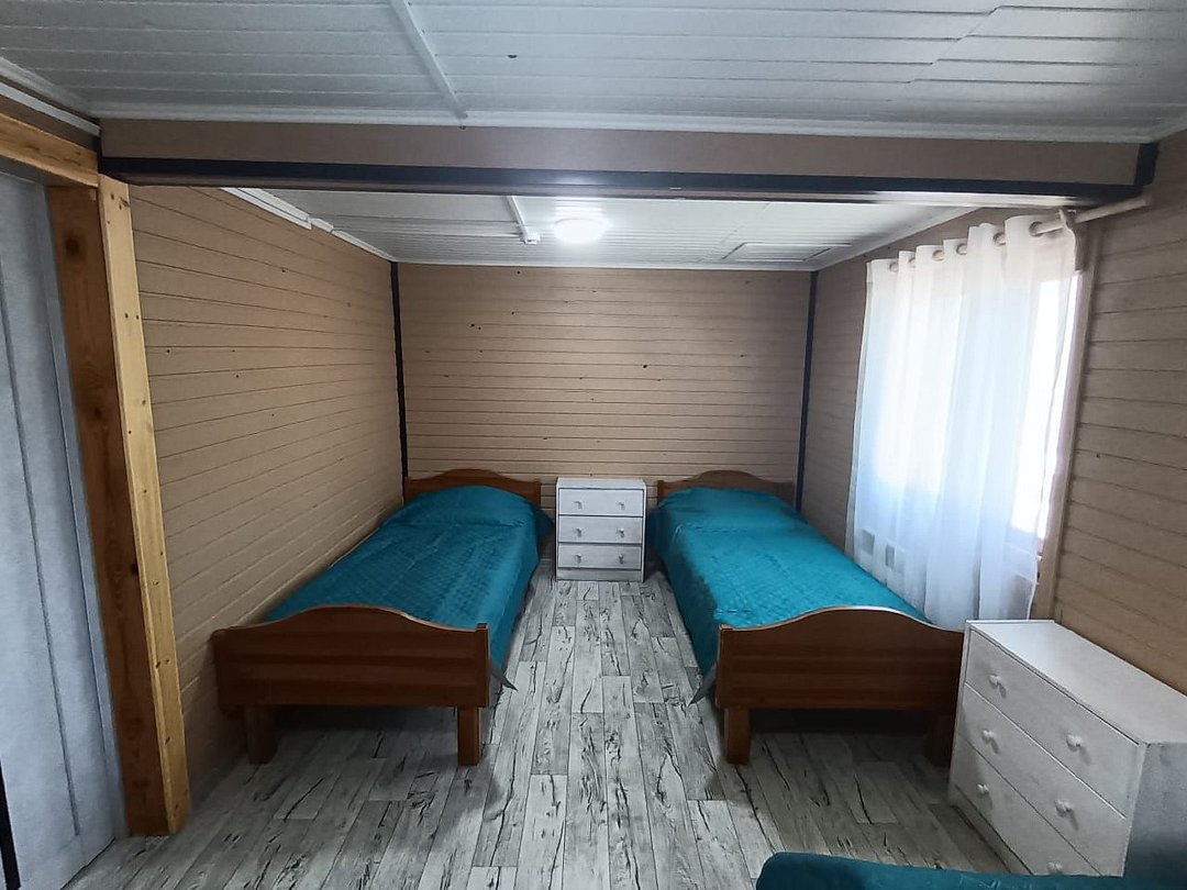 1 комната —четыре односпальных кровати. Диван двуспальный в кухне-гостинной -дополнительные места.