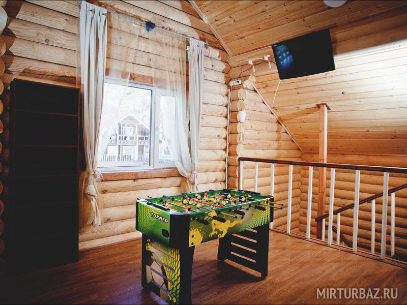 На втором этаже две спальни по 3 кровати. Гостиная с телевизором, игровой настольный футбол. На раскладном диване возможны дополнительные места. В коттедже полы с подогревом. Всего 11 мест + 2 раскладных дивана.