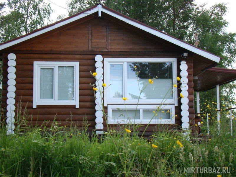 Одноэтажный коттедж расположен на самом берегу озера, имеет выход на маленькую террасу с видом на озеро.