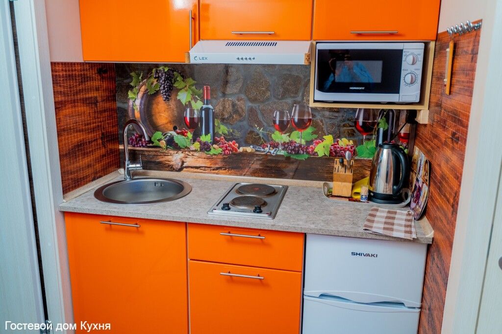 - мини-кухня с электрической плитой, холодильником, чайником;