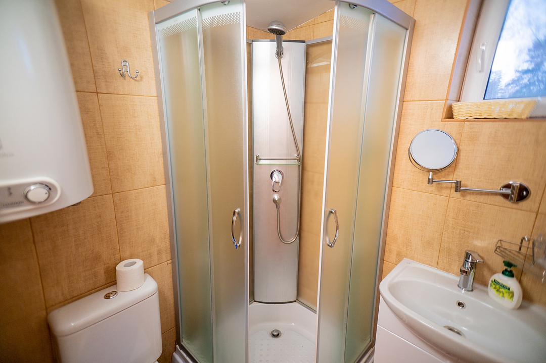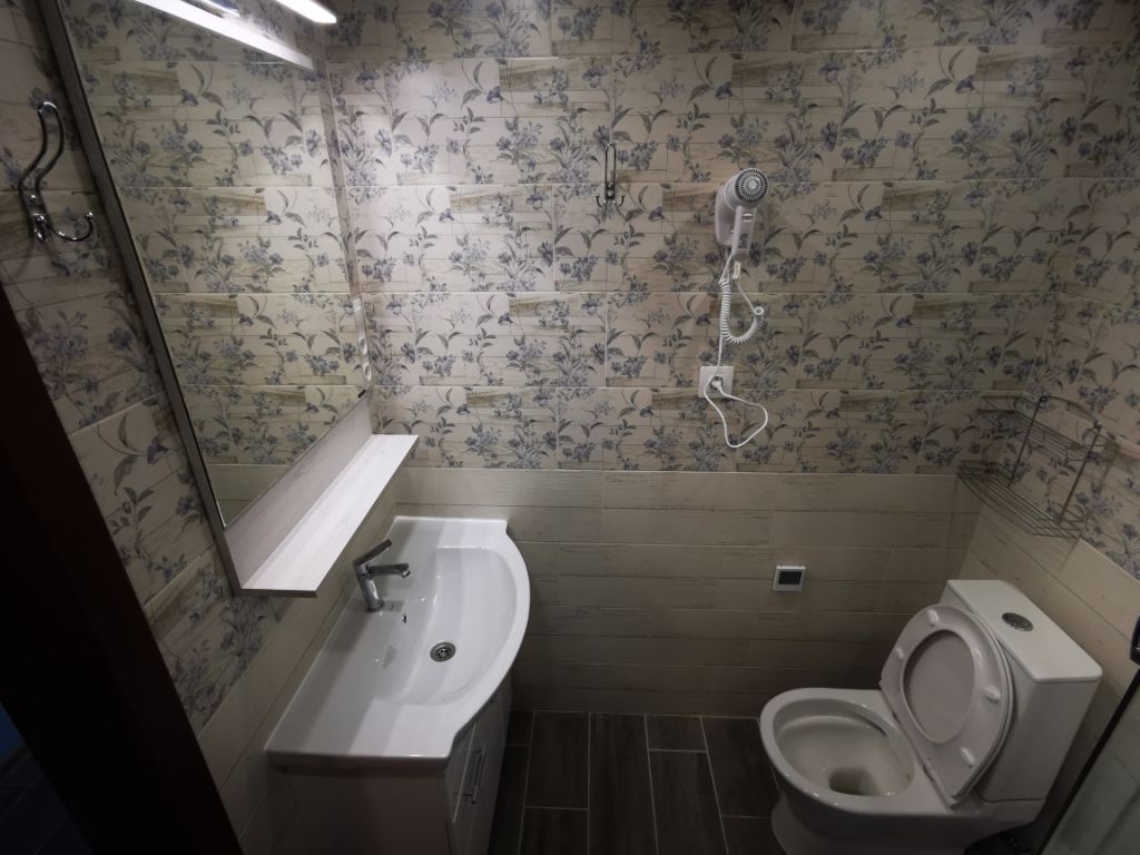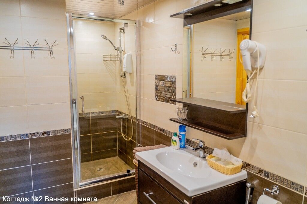 - ванная комната с душевой кабиной, фен;