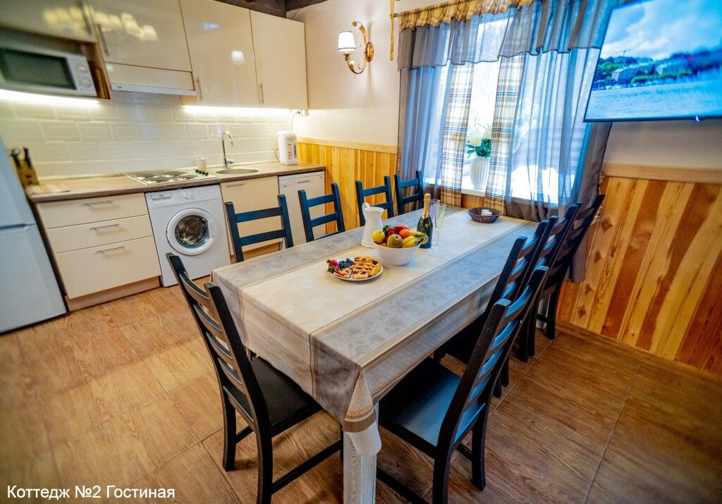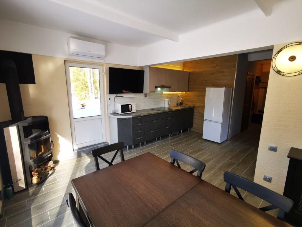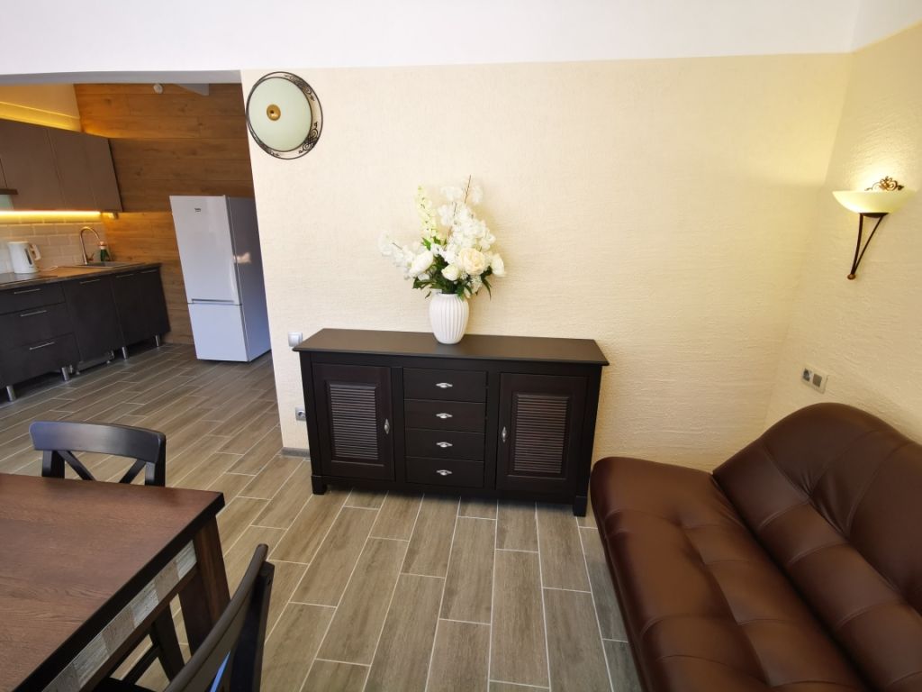 Для вашего комфорта в гостиной раскладной диван, кондиционер, телевизор, обеденная зона. На кухне 2-х конфорочная электроплита, двухкамерный холодильник, свч, посудомоечная машина, электрочайник, комплект посуды для приготовления пищи, набор столовой посуды на 6 человек.