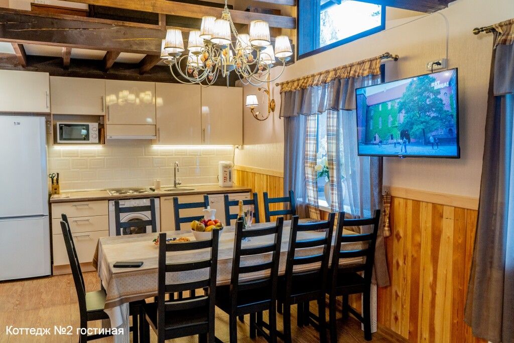 Для размещения гостей предоставляются гипоаллергенные коттеджи на 8 мест и гостевой дом на 2 человек. Обустроены террасы для барбекю-вечеринок под навесами. Коттеджи построены по скандиновской техноголии из натуральных экоголичных материалов.