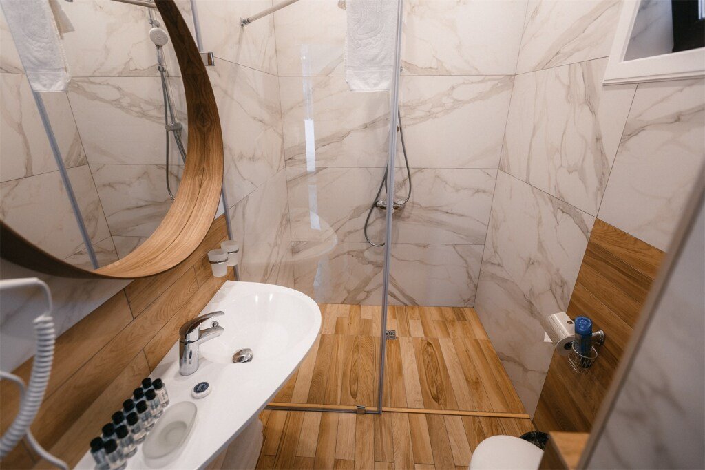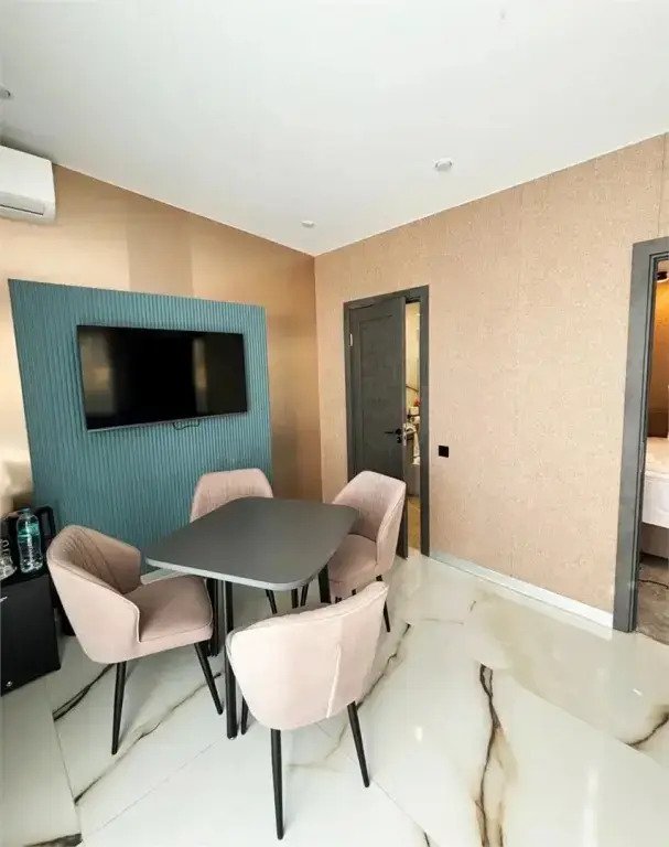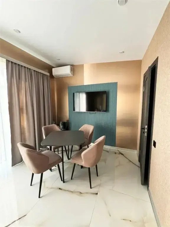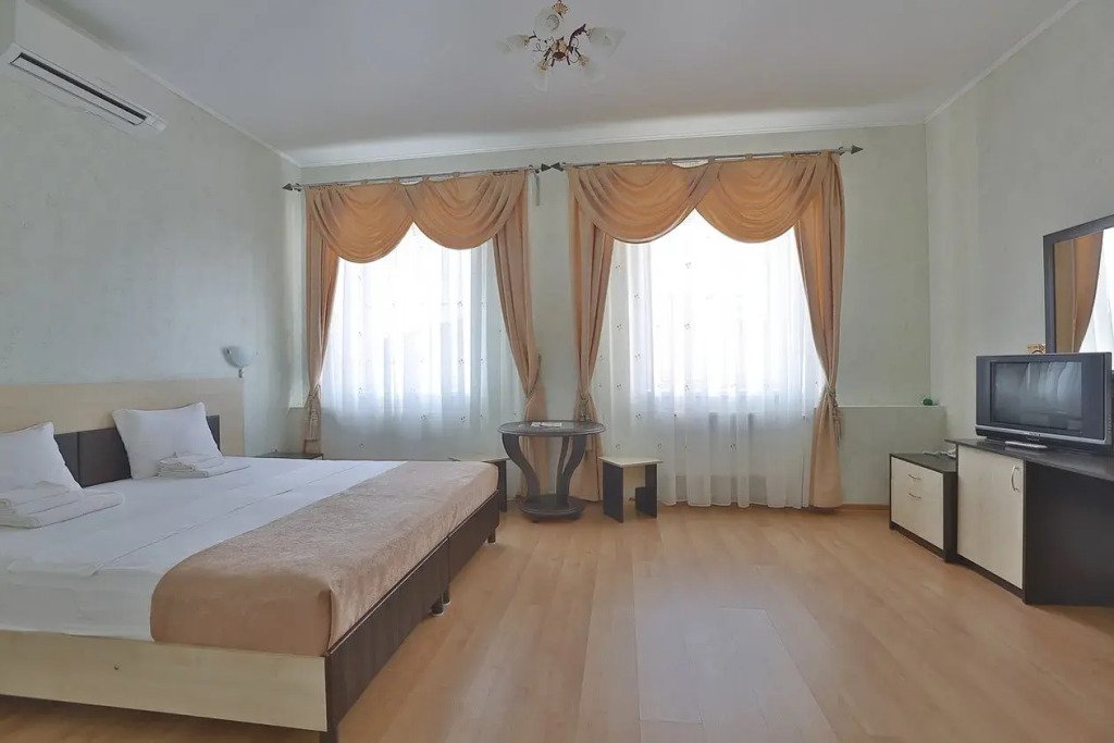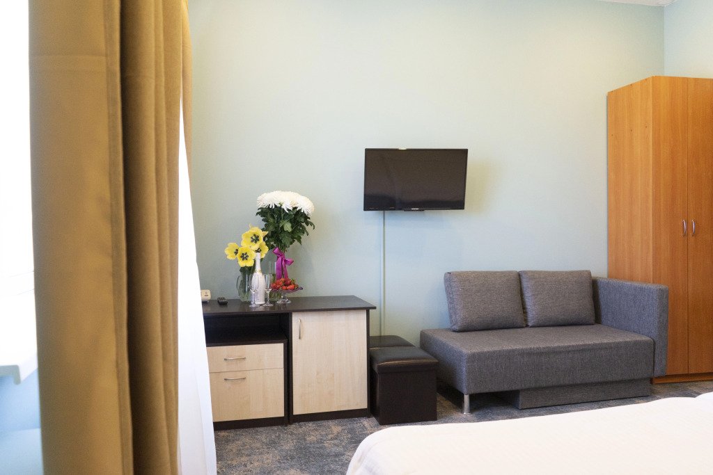 В номере вас будут ждать телевизор и халат. Оснащение зависит от выбранной категории номера.