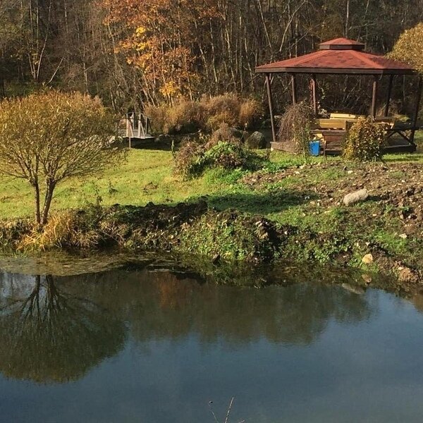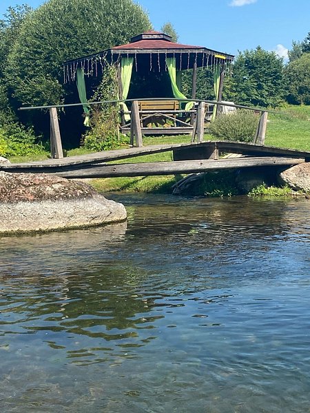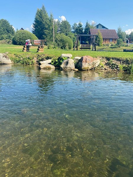 Перед вами откроются просторные пейзажи, прозрачная родниковая речка, протекающая прямо возле дома, где можно купаться круглый год.