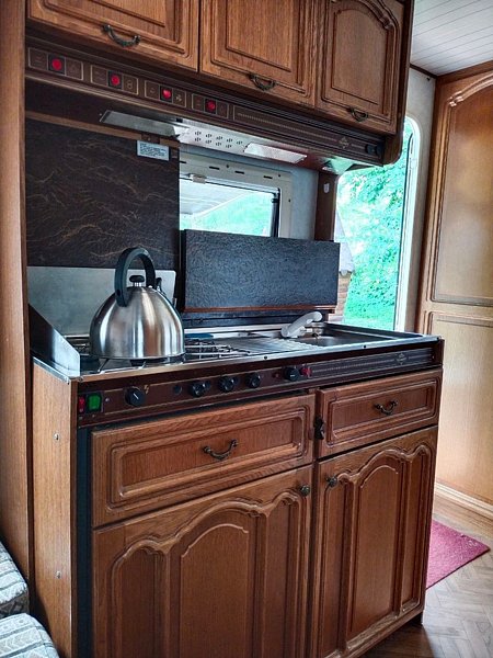 - газовая плита с двумя конфорками, вытяжка над плитой;