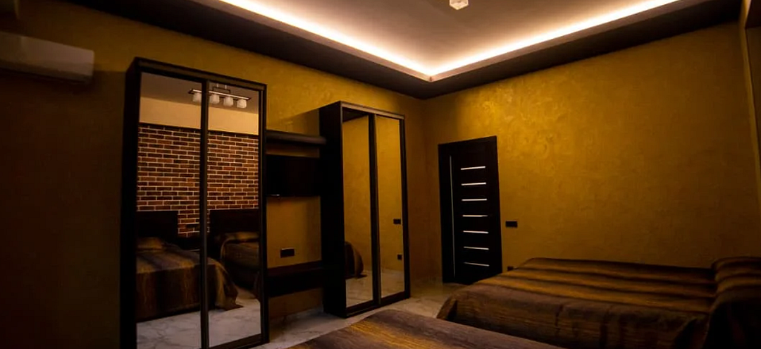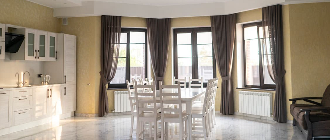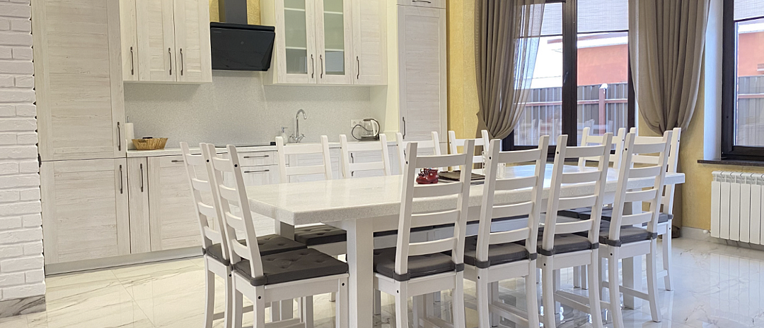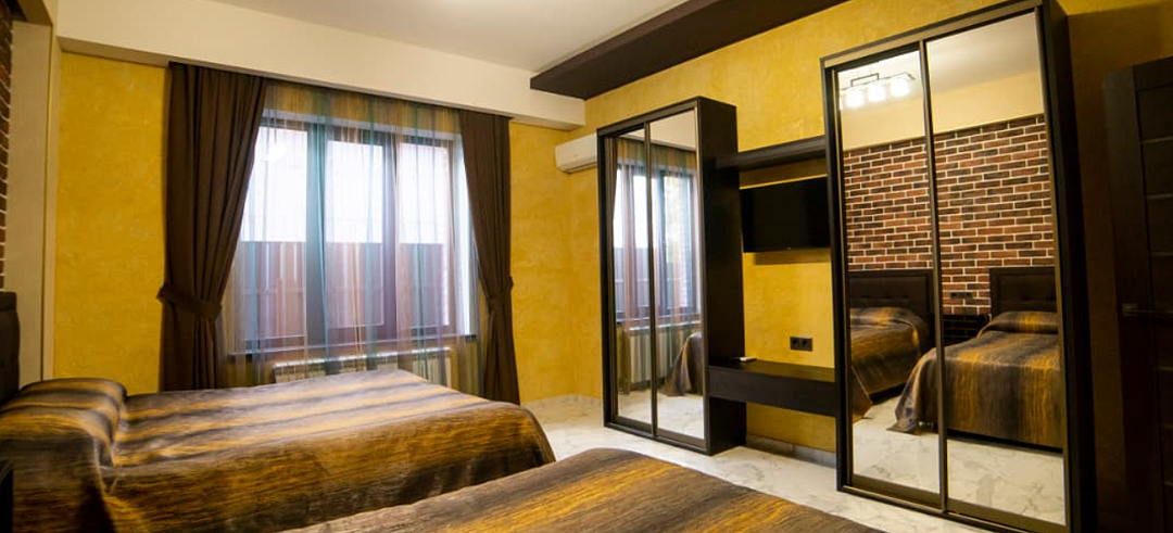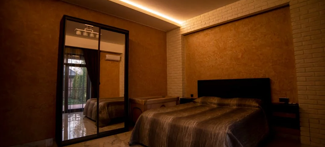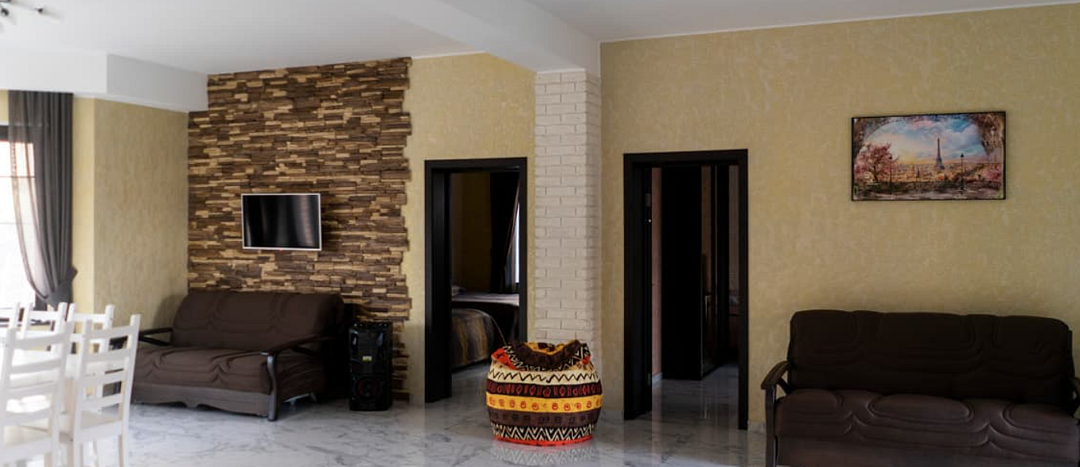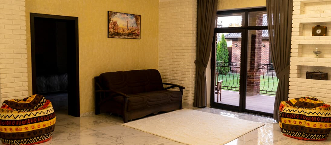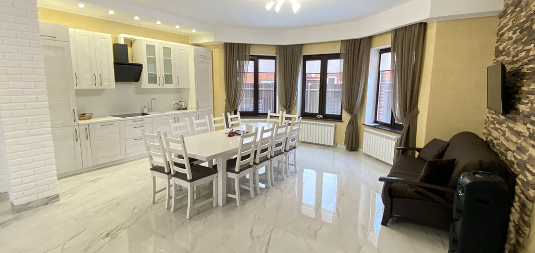 Уютный комплекс, где есть всё. Гостям предлагают два современных дома площадью по 300 м², где можно комфортно разместиться всей семьёй. В гостевом доме предоставляются бесплатный Wi-Fi и бытовые принадлежности: посуда, тапочки, шампуни, гели, мыло, полотенца. Есть бытовая техника: фен, утюг с гладильной доской, варочная панель, холодильник, СВЧ-печь, посудомоечная и стиральная машины. В каждой комнате — телевизор. Во всех комнатах, бассейне и санузлах работает система тёплого пола.