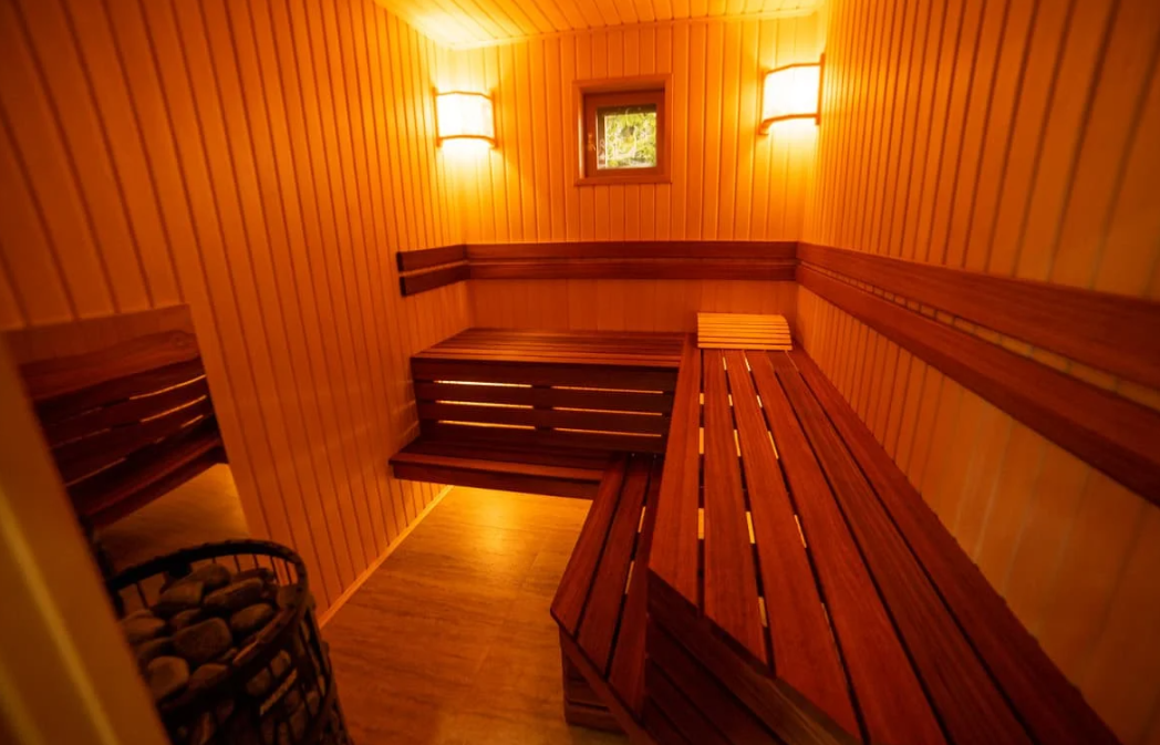 Электрическая сауна с возможностью поддержания температуры до 110 градусов позволит расслабиться после активного дня на свежем воздухе.