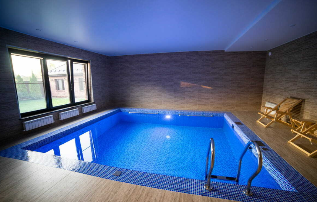 Любимое развлечение взрослых и детей – тёплый бассейн! Его размер: 4,5х4,5 м, глубина 1,6 м. Вода чистая и безопасная, так как проходит через системы механической и химической очистки.