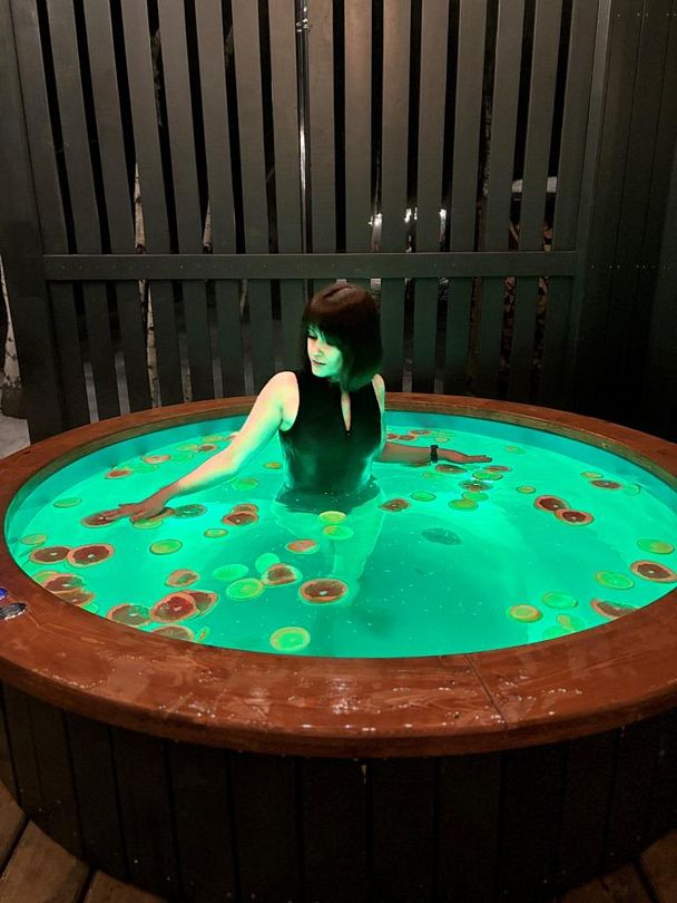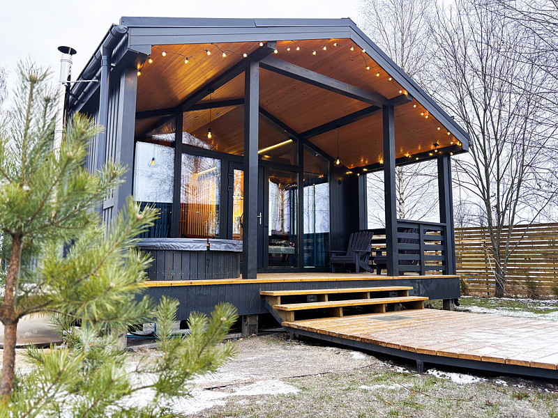 Дровяная купель фурако на веранде вашего домика создаст незабываемые впечатления. Купель оснащена подсветкой и аэромассажем.