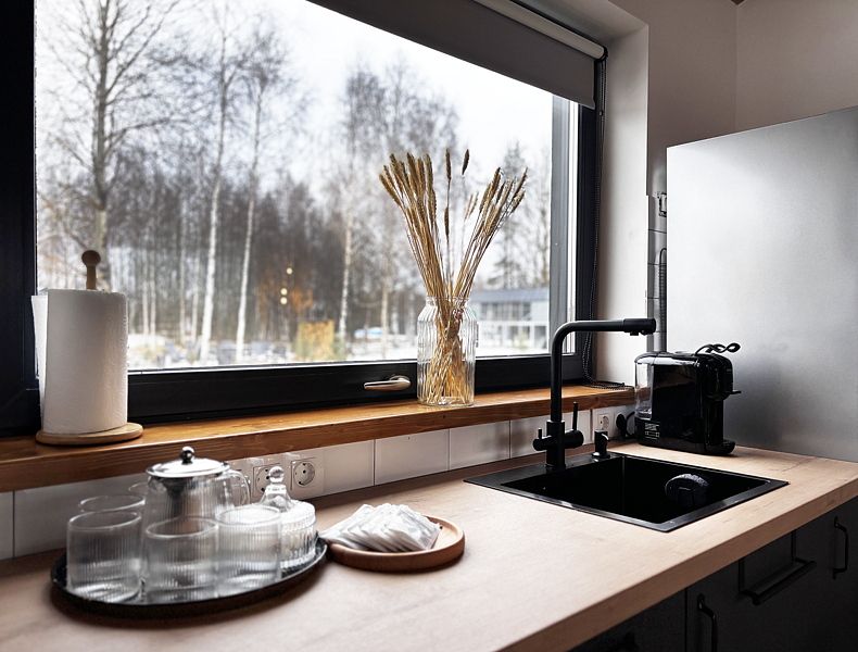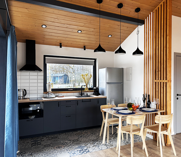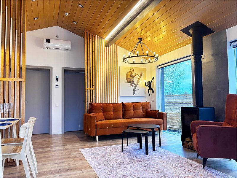 Насладитесь отдыхом на лоне природы, не отказываясь от удобств. В домах есть все необходимое: стильные кухни с бытовой техникой, панорамные окна, стирающие границы между домом и природой, мягкие кровати, изысканная мебель и камин в гостиной. В каждом доме вы найдете камин, музыкальный плеер и телевизор.