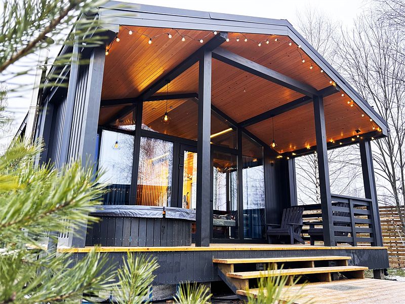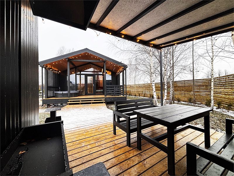 Каждый дом располагает террасой с горячей купелью и удобной мебелью, беседкой с грилем и гамаком. Для маленьких гостей предусмотрена игровая площадка, а для романтических вечеров — патио с костровой зоной.