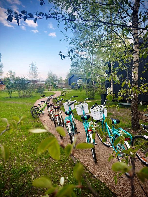 Зимой вы можете прокатиться на санках до реки с детьми, покататься на коньках или ватрушках. Любители лыжных прогулок могут воспользоваться трассами, начинающимися прямо за территорией комплекса. Летом можно взять напрокат велосипеды и отправиться на прогулку вдоль реки или сплавиться на байдарках или SUP-бордах.