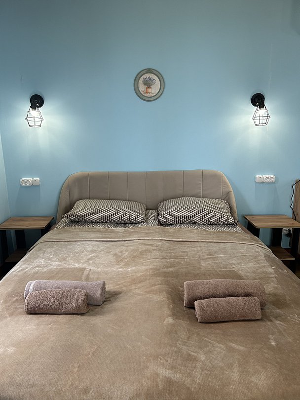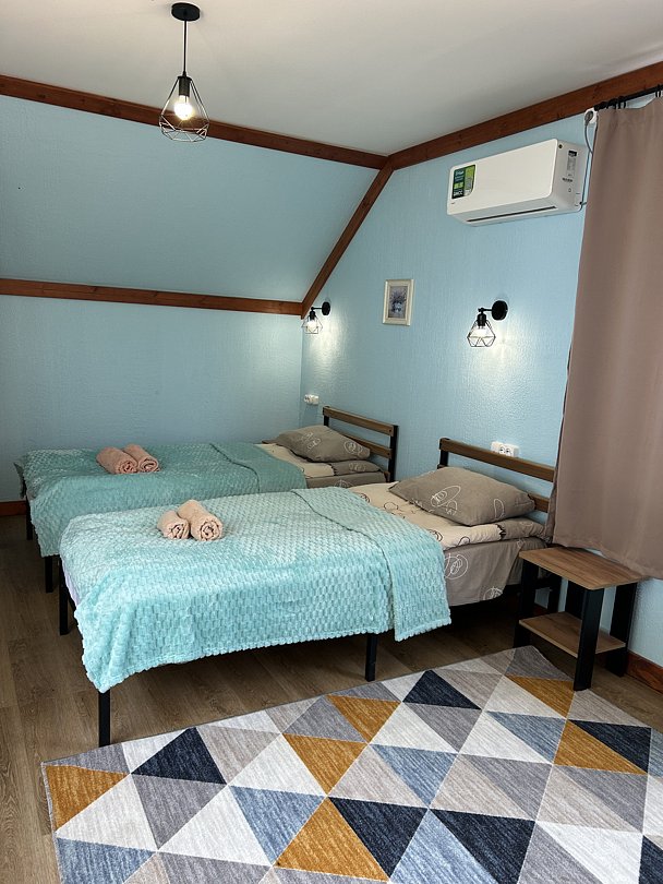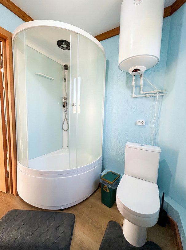 Спальные места: двуспальная кровать или две односпальные (на выбор) + полноценная дополнительная кровать. Удобства: индивидуальный санузел с душевой кабиной.