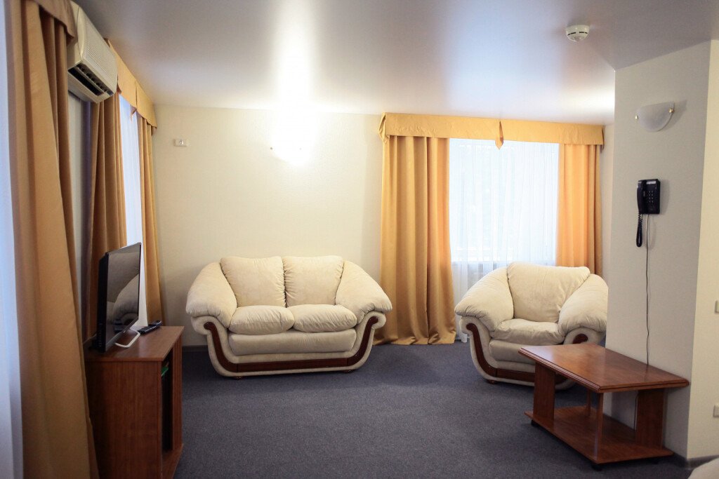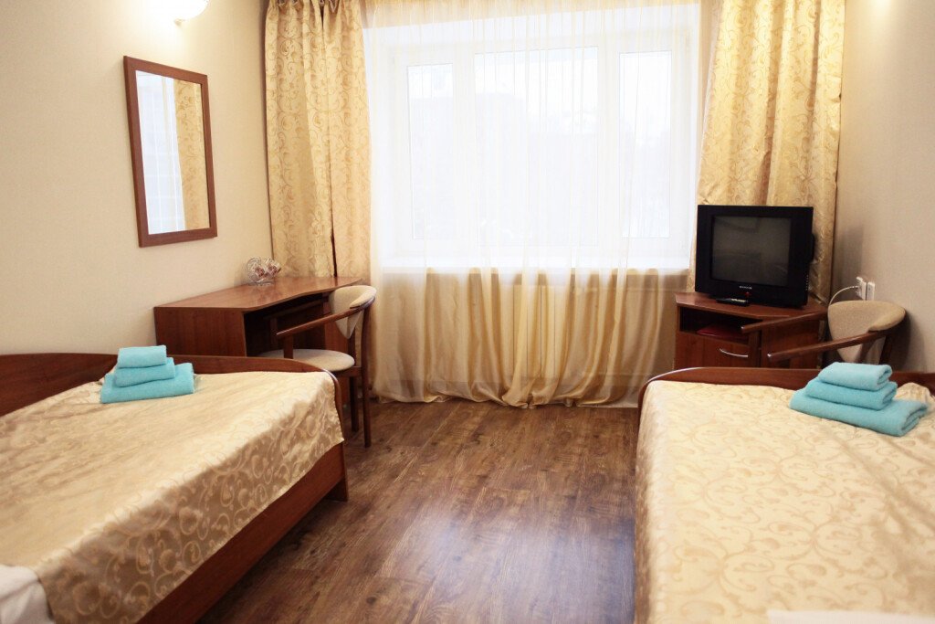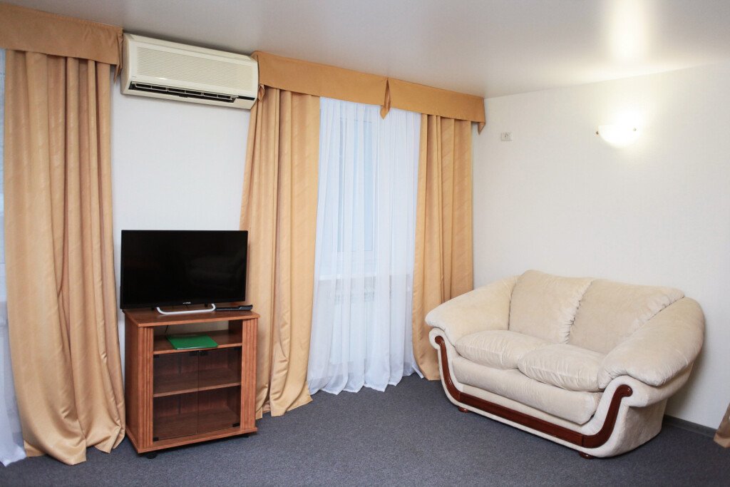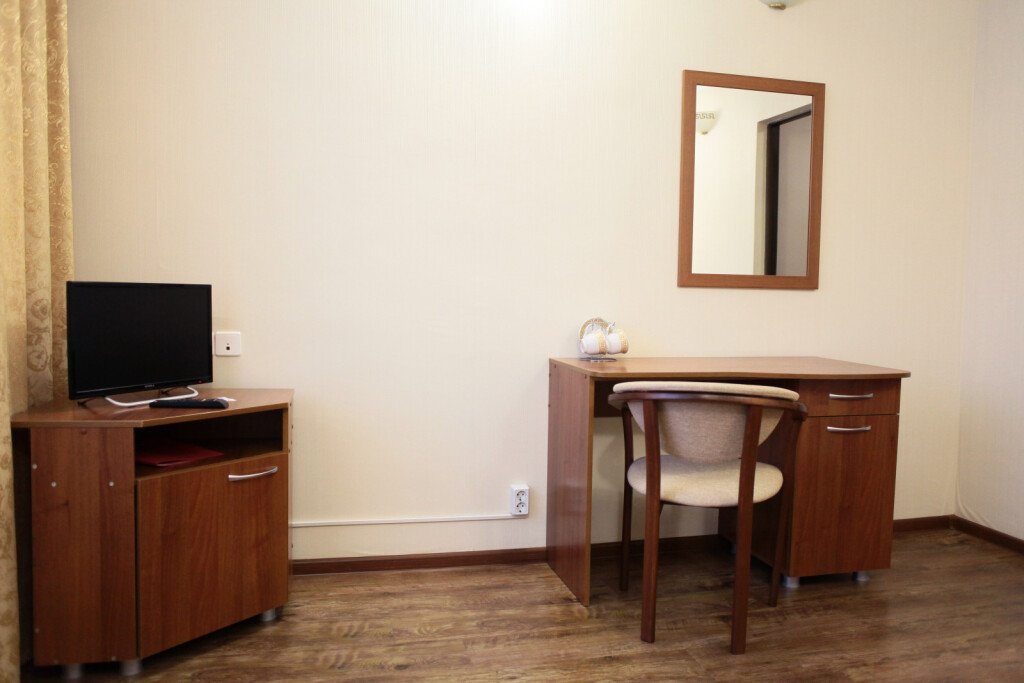 Номер уютно обставлен и оснащён необходимым, чтобы отдохнуть после долгого и насыщенного дня. Имеются телевизор. Оснащение зависит от выбранной категории номера.