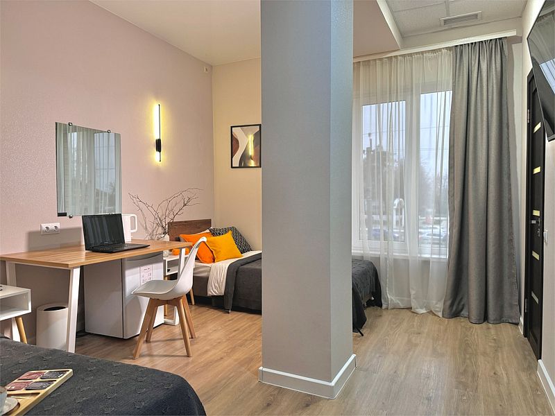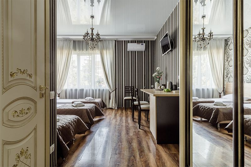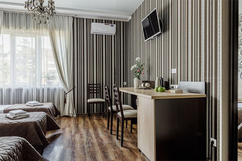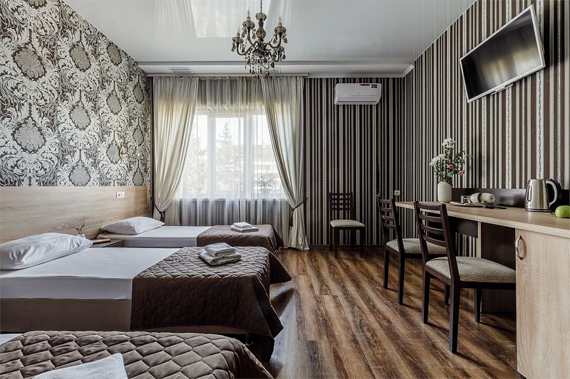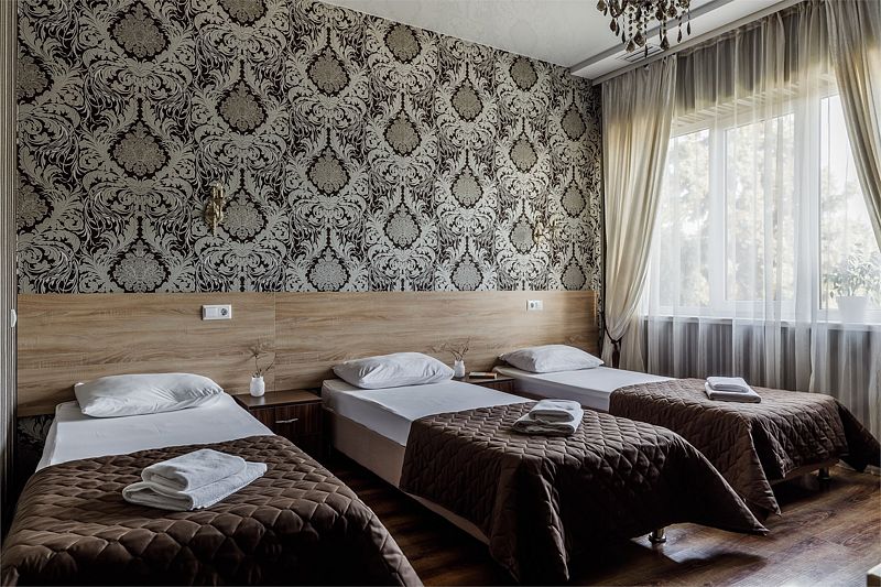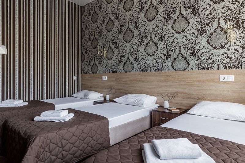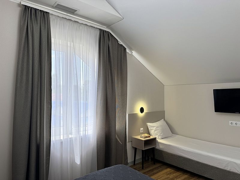 Комфортный однокомнатный номер с двуспальной и односпальной, либо с тремя односпальными кроватями.