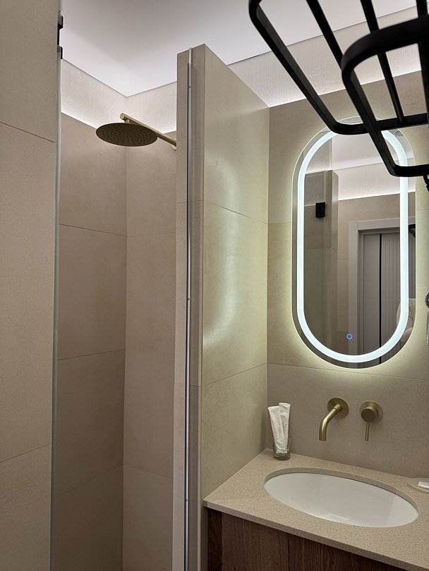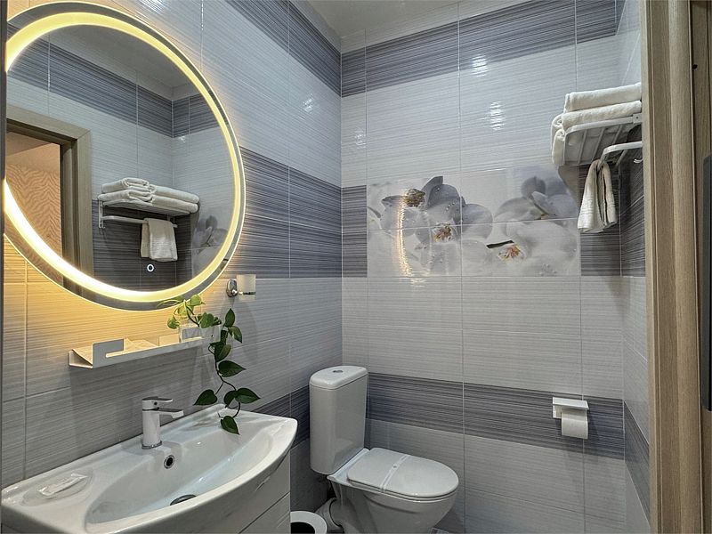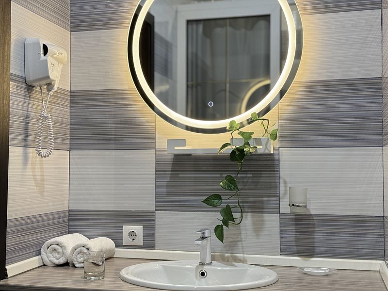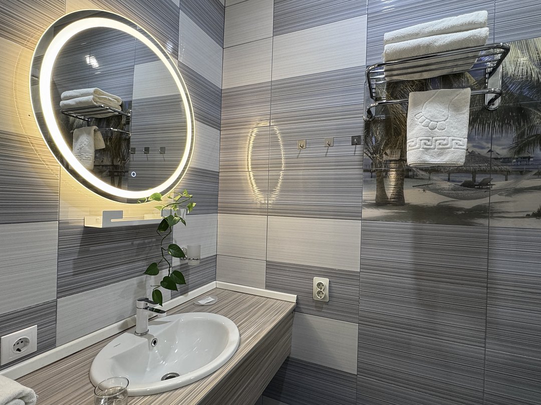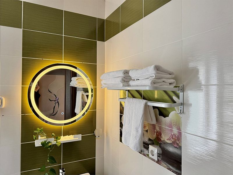 Из минусов: напор воды оставляет желать лучшего, неудобно завтракать в номере, на фоне свежести номера очень бросается в глаза ржавая сетка для душевых принадлежностей.
