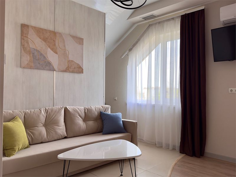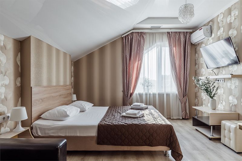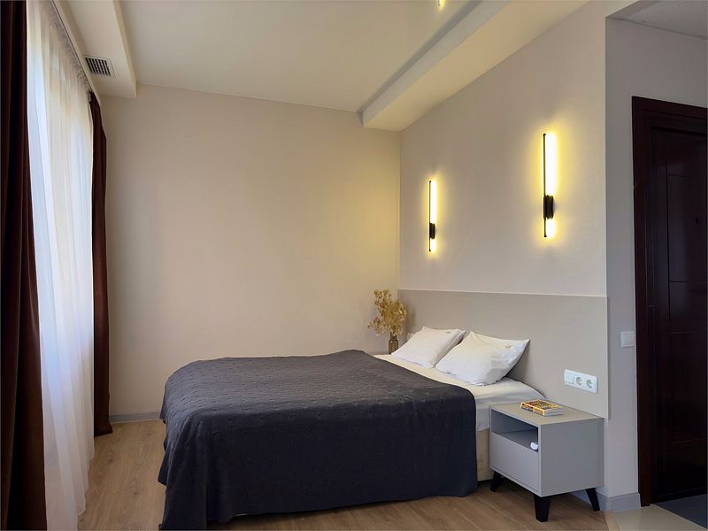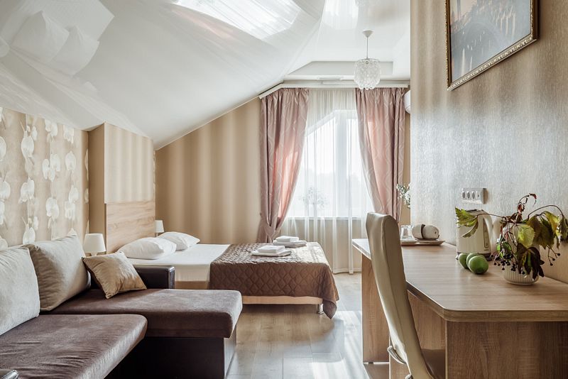Комфортный однокомнатный номер с двуспальной или двумя односпальными кроватями и двухместным раскладным диваном.