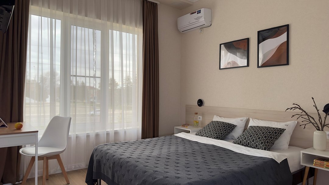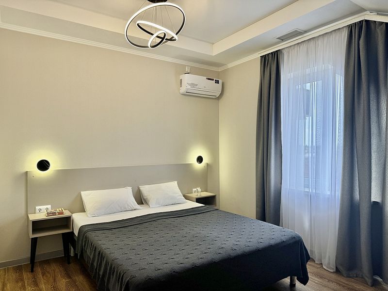Комфортный однокомнатный номер с двуспальной или двумя односпальными кроватями.