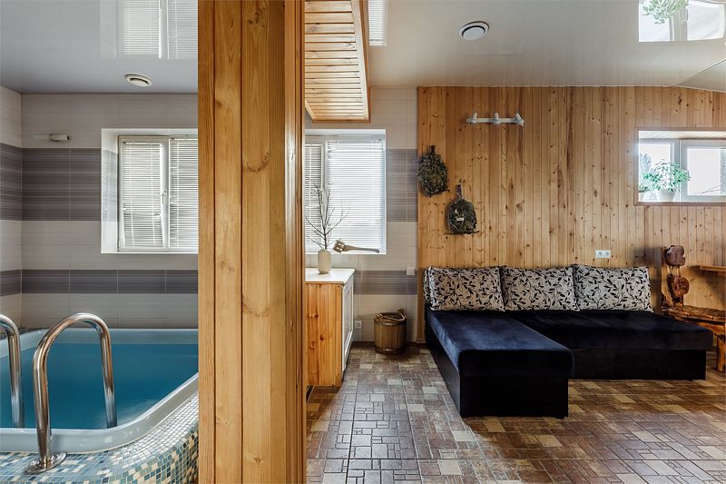- С бассейном и баней