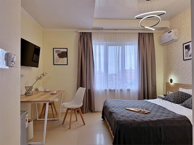 июль 2022 г.ОТЛИЧНЫЙ ОТЕЛЬ!!!Ездили с семьей и маленькими детьми в Краснодар( отмечать День Рождение),останавливались на ночь в отеле "Моцарт" .Брали Апартаменты с сауной - полный восторг!!! Бассейн в номере очень обрадовал старшую внучку- такого мы еще не встречали!!! Номер чистый, есть холодильник, микроволновка, посуда и т.д.....Большое спасибо за такой сервис! Отдельное спасибо администратору Людмиле за внимание! ОЛЬГА