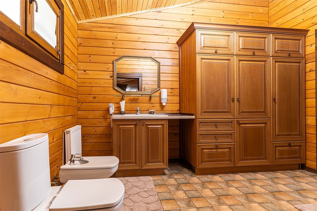 Дом "Охотника" двухэтажный сруб вместимостью до 20 гостей (при дневном пребывании) отличное предложение для небольшой компании. На первом этаже размещается мини кухня и большой дубовый стол на 20 посадочных мест. На втором этаже пять комнат, в которых есть все необходимое для комфортного проживания. В доме расположены три ванных комнат, одна на первом этаже и две на втором этаже. Рядом с домом находится отдельная оборудованная зона для барбекю и летняя беседка вместимостью до 15 персон. Дом "Охотника" находится на Центральной аллее, рядом располагается спорт площадка, детская комната и ресторан. Площадь - 225 м2 / кол-во проживающих 10 человека/ кол-во комнат – 5Услуги и удобства