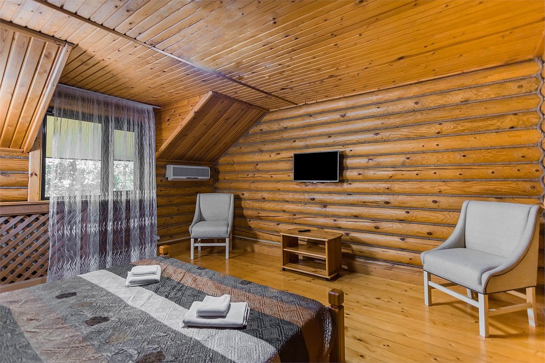 Номера в домах из сруба идеально подойдут желающим насладиться прелестями загородной жизни и побыть наедине с природой. Сочетание натуральных эко материалов, стилизованной качественной мебели и современных технологий делают отдых в наших коттеджах максимально комфортным. Все домики оборудованы летними верандами и площадками для барбекю, так полюбившимися нашим гостям. Что может быть лучше уютного вечера с друзьями, проведенного за приготовлением любимых блюд на огне?Услуги и удобства