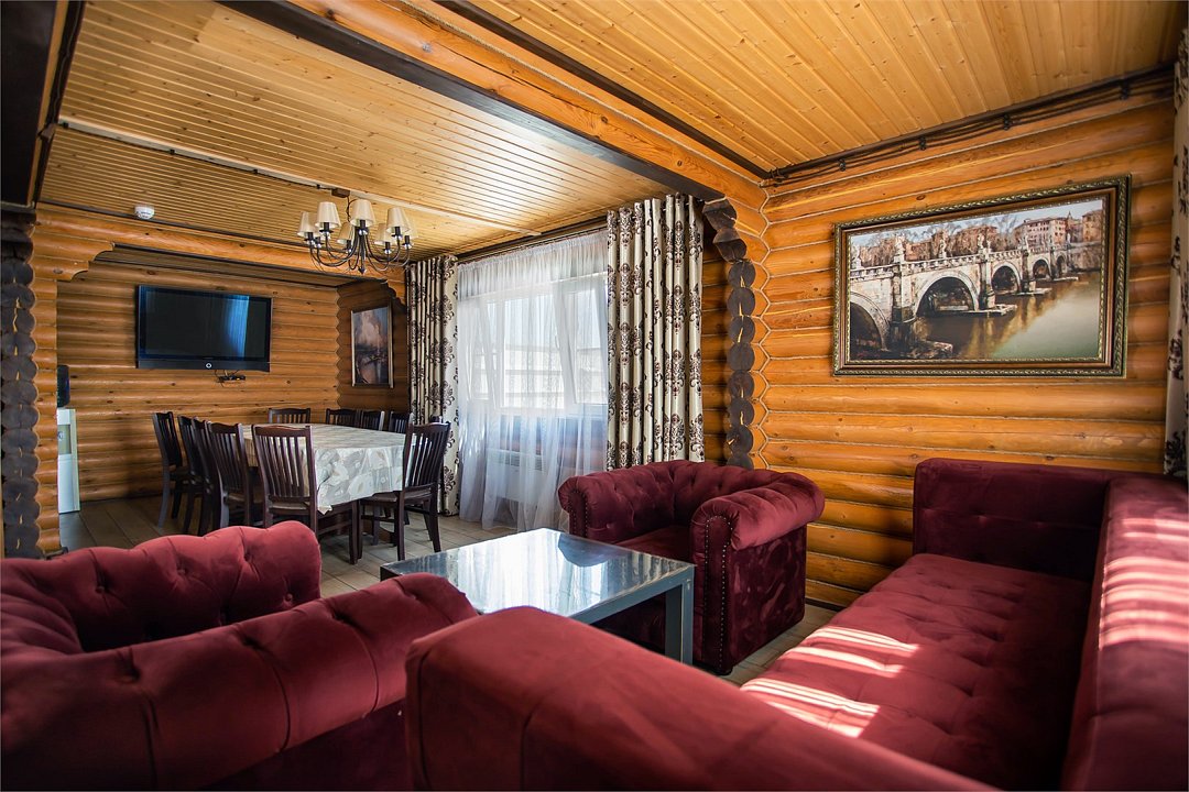 Гостиничные номера (6 номеров) нашего комплекса оснащены всем необходимым для комфортного загородного отдыха. Большие кровати позволяют прекрасно выспаться и набраться сил вдали от шумного города. Деревянный декор стен создает атмосферу тепла и уюта. Площадь стандартного номера - 20 м2 / кол-во проживающих 2 человека/ кол-во комнат – одна Гостиница расположена на Центральной аллее. Недалеко от гостиницы находятся спорт площадка, детская комната, ресторан. Рядом с гостиницей находится оборудованная площадка для барбекю.Услуги и удобства