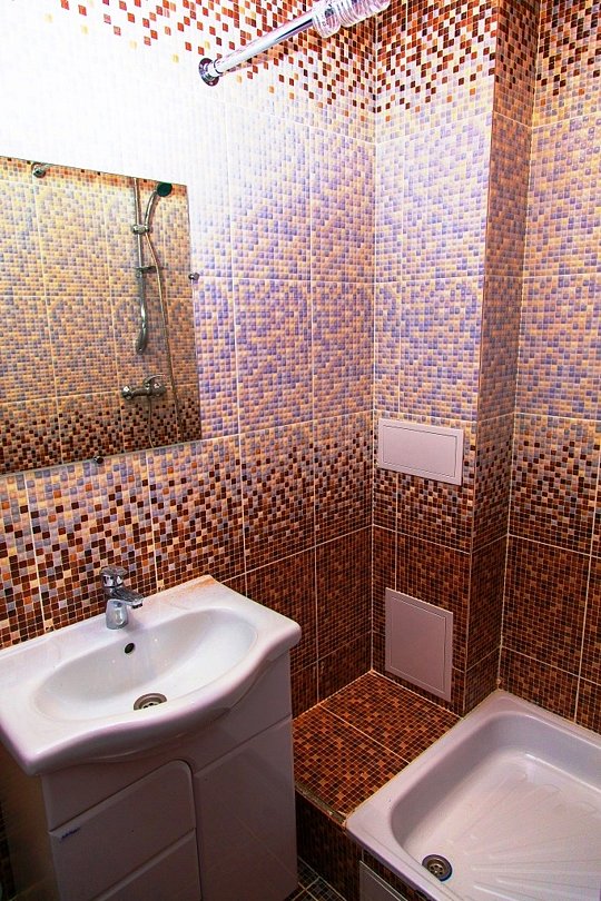 Санузел на два номера: оборудован душевой, унитазом, умывальником, укомплектован полотенцами и гигиеническими принадлежностями, также имеется фен. К вашим услугам всегда КАФЕ и БЕСПЛАТНАЯ автостоянка. Номер расположен на втором этаже.Услуги и удобства
