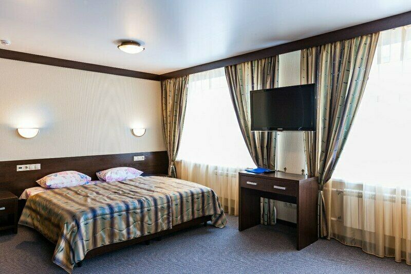 Номер с 2 односпальными кроватями, телевизором с плоским экраном и холодильником. Также к вашим услугам собственная ванная комната с душем и бесплатными туалетно-косметическими принадлежностями.