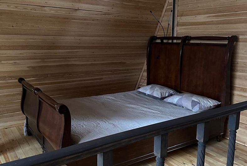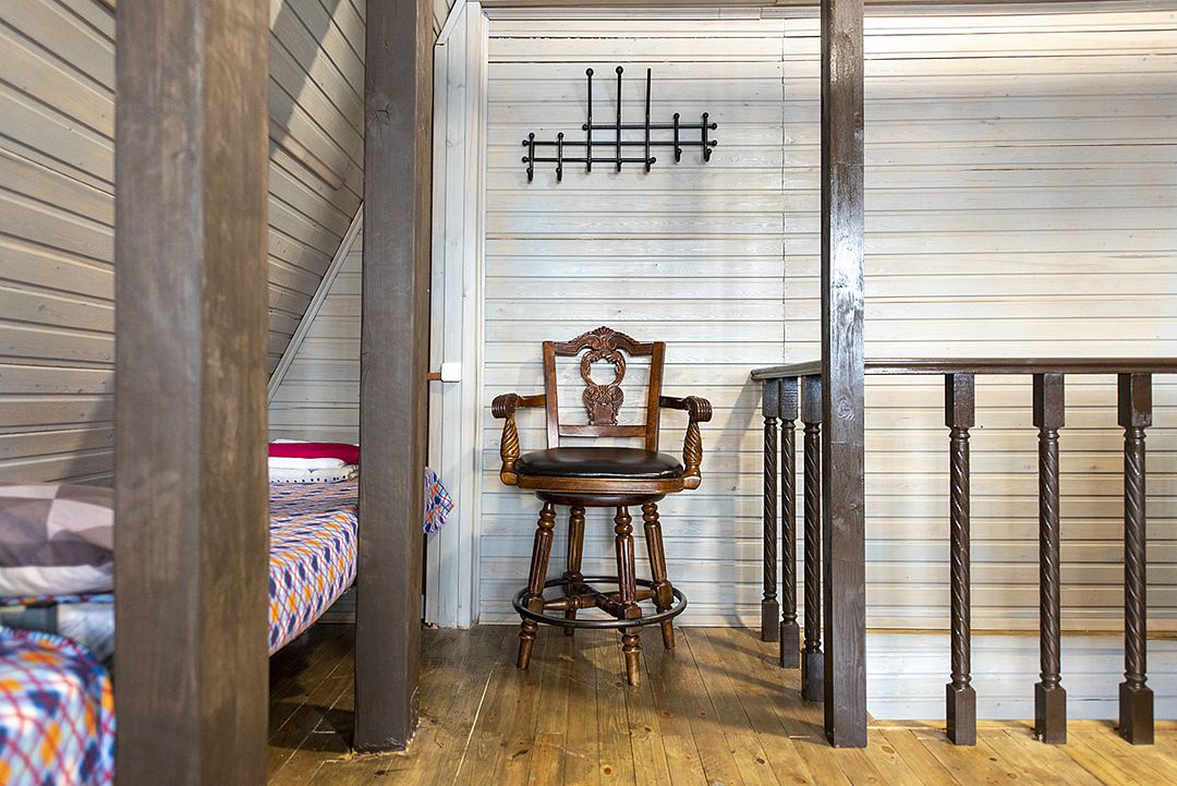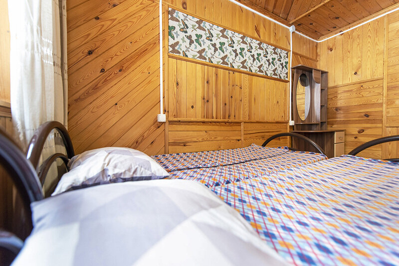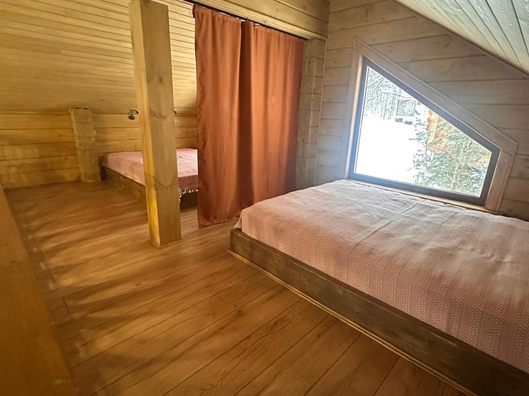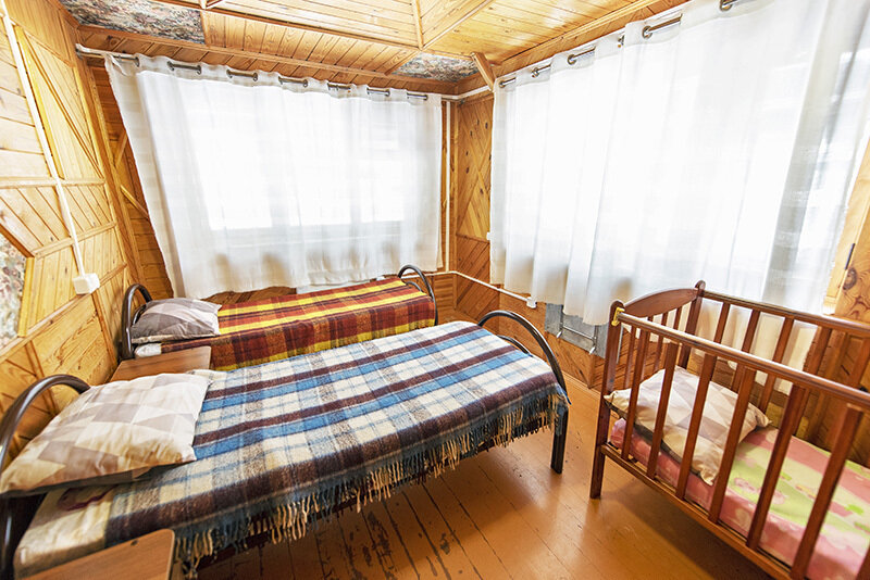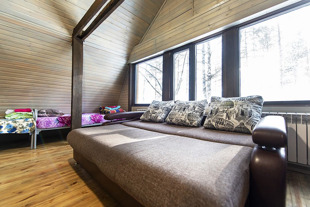 На втором этаже одно и двуспальные кровати на 6 человек.