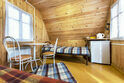 4-х и 5-ти местные номера. В общем зале спутниковое ТВ, кухня (плита, микроволновка, чайник, холодильник), душевая кабина, умывальник, туалет.