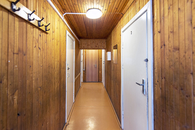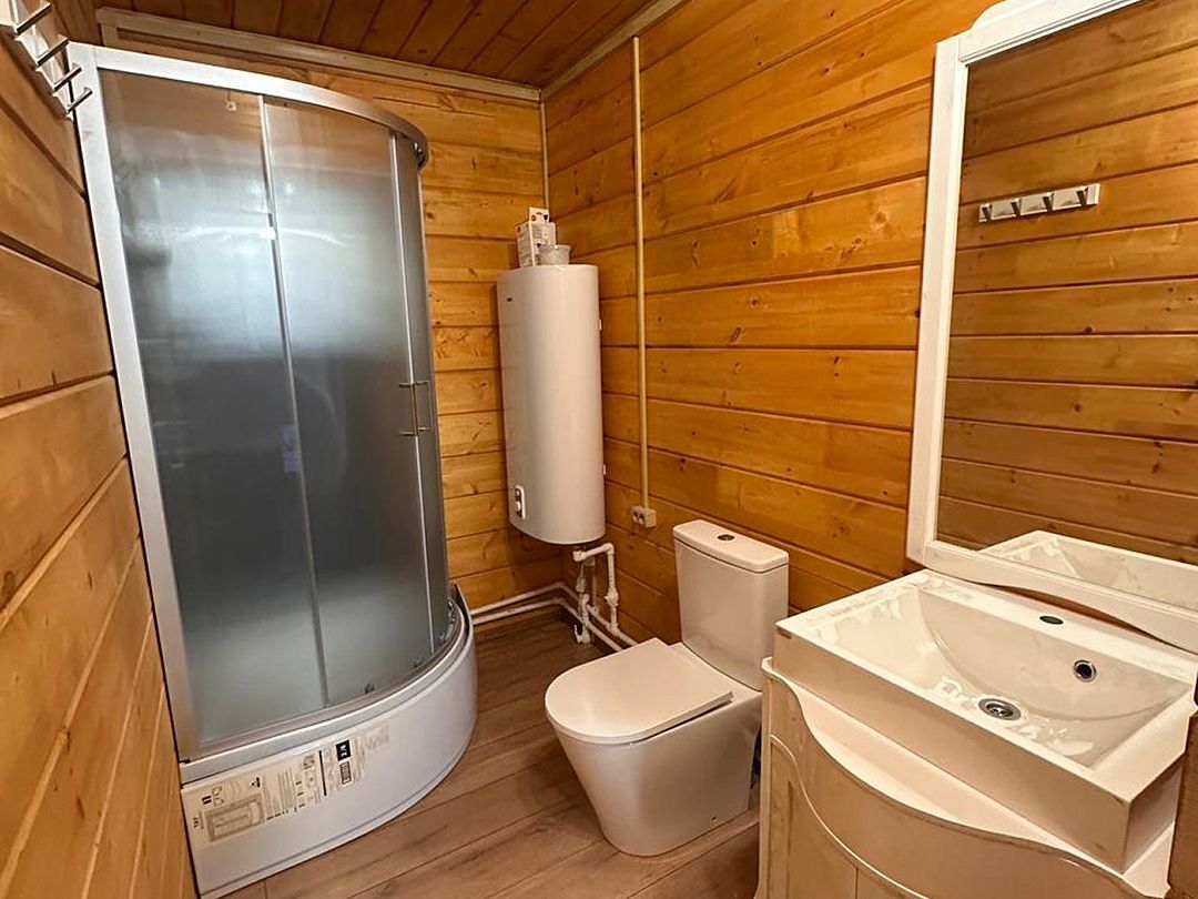 Первый этаж: 4 спальни по две односпальные кровати, общая кухня. Санузел с душевой в цоколе.