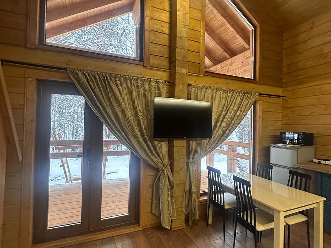 Путешествие с семьейОтличный отдых на природе!Отдыхали семьей в домике 2 и все очень понравилось! Само место, где расположена база очень красивое, природа просто замечательная! В городе уже все растаяло, было грязно и слякоть, а на базе еще лежал белоснежный, пушистый снег. До базы доехали прямо на своей машине по зимней дороге. Сам домик хороший, как раз на семью из 4-5 человек, нас было четверо и места всем хватило. Домик теплый, батарея в каждой комнате и теплый пол. Очень комфортно, что есть свой туалет и душ. Столовая в это время не работала и мы сами готовили, есть плита, холодильник, чайник посуда и микроволновка. Рядом с домом мангал, жарили шашлыки. Сходили в баньку, накатались на плюшке с горки и даже постреляли в тире. Дети построили снежный дом и накатались на коньках. Персонал приветливый, довезли наши вещи на снегоходе до домика. В домике даже есть телевизор, но мы его не смотрели наслаждались природой и дышали свежим воздухом. Провели отличные выходные за городом, поэтому рекомендую посетить эту базу.