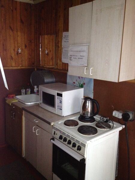 Кухня: холодильник, электроплита, электрочайник, микроволновка, посуда.