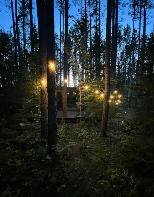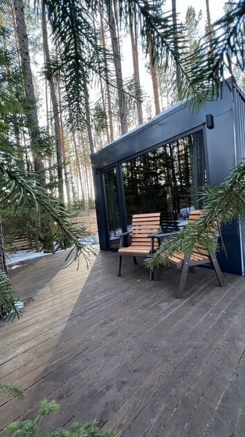 Домик окружен вековыми соснами во всей их первозданной красе, что погружают в особую атмосферу, а панорамные виды и комфорт вдали от городского шума помогают расслабиться и восстановить силы.