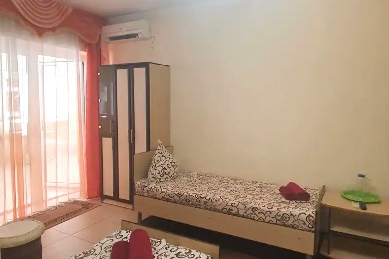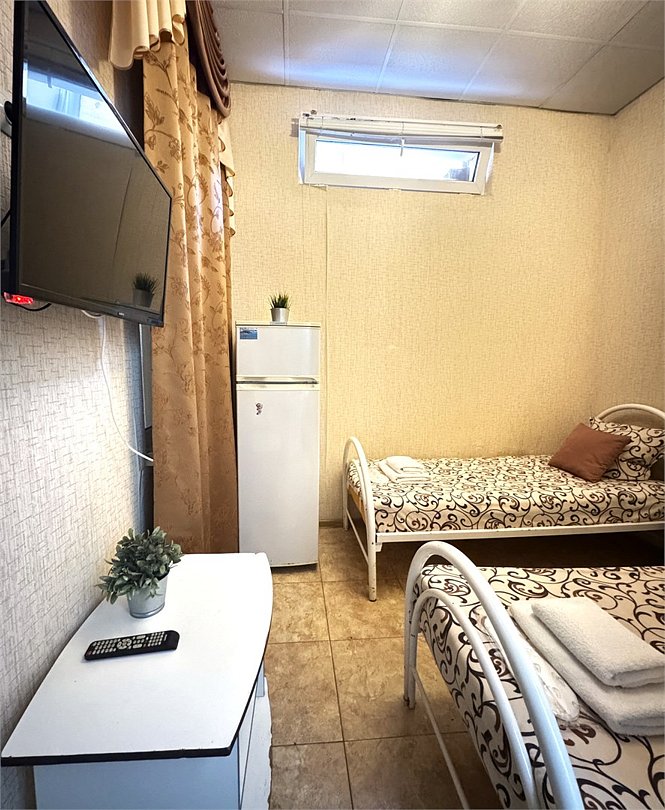 Уютный маленький двухместный номер площадью 8 м 2 состоит из комнаты и санузла. Номера данной категории расположены на 1 этаже. Номер оснащен двумя односпальными кроватями, шкафом для одежды, мини-холодильником, кондиционером, телевизором. Номер укомплектован постельным бельем, полотенцами. В ванной комнате установлен душ (без поддона).Услуги и удобства