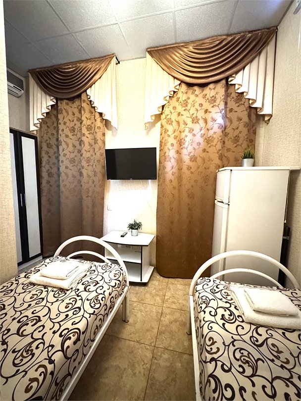 Уютный маленький двухместный номер площадью 10 м2 состоит из комнаты и санузла. Номера данной категории расположены на 4 этаже - на верхние этажи подняться можно только по лестнице. Номер оснащен двумя раздельными кроватями, шкафом для одежды, мини-холодильником, кондиционером, телевизором. Номер укомплектован постельным бельем, полотенцами. В ванной комнате установлен душ (без поддона).Услуги и удобства