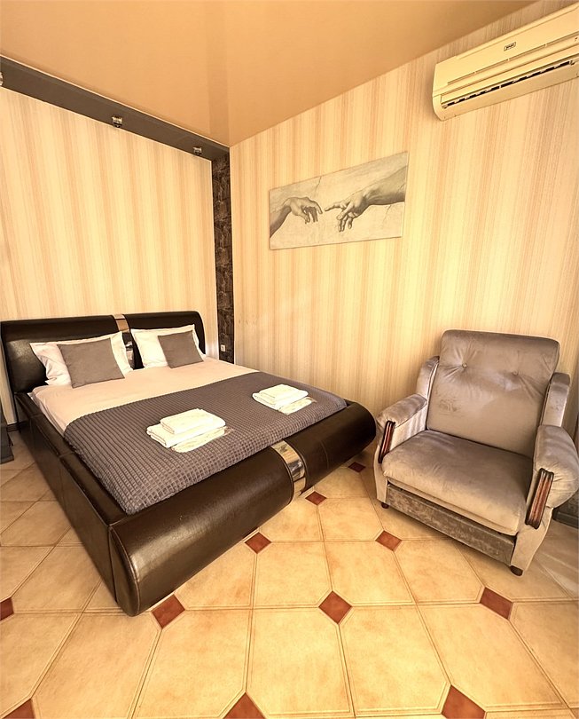 Уютный маленький двухместный номер площадью 9-10 м 2 состоит из комнаты и санузла. Номера данной категории расположены на 4 этаже - на верхние этажи подняться можно только по лестнице. Номер оснащен двуспальной кроватью (ширина 1,4м), шкафом для одежды, мини-холодильником, кондиционером, телевизором. Номер укомплектован постельным бельем, полотенцами. В ванной комнате установлен душ.Услуги и удобства